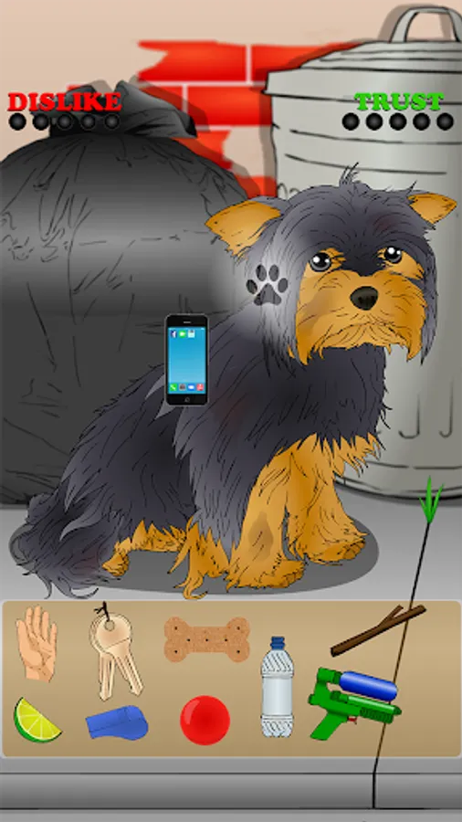 With the objects on the stage help this poor dog to trust mankind again. But you have to be careful because of the 10 objects in the game, 5 will earn you this poor dog trust while the other 5 will make the dog dislike you and the game will be over.