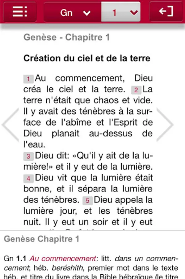 - Read the Bible in portrait or landscape mode, navigating from one chapter