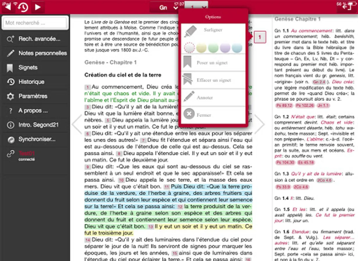 The Bible Segond 21 study is one of the only study Bibles available in French on the Play Store. It allows you to: