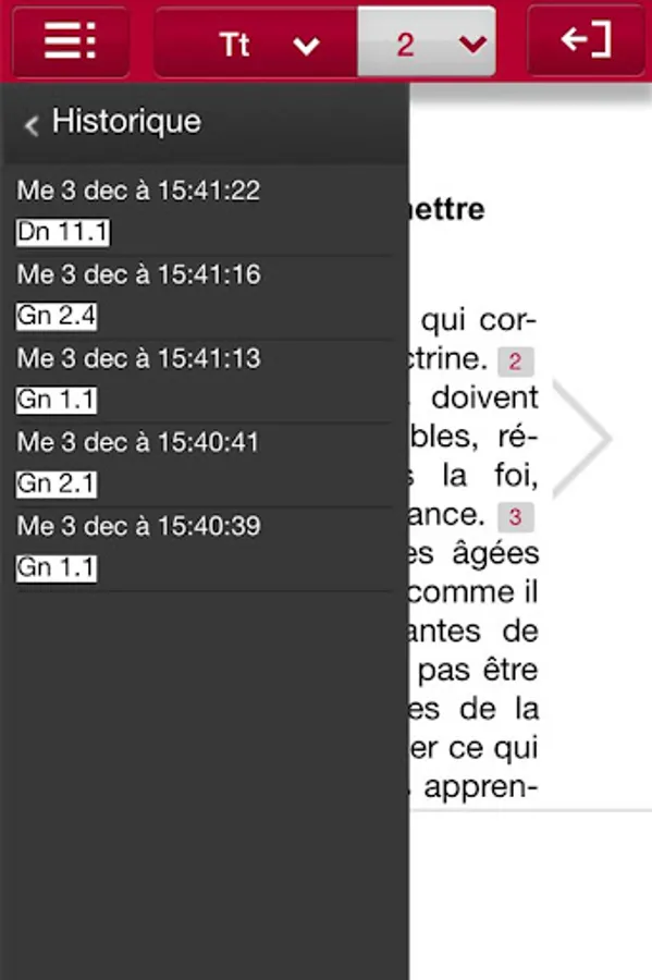 - Find your reading history (ideal as part of a Bible study or during a sermon)