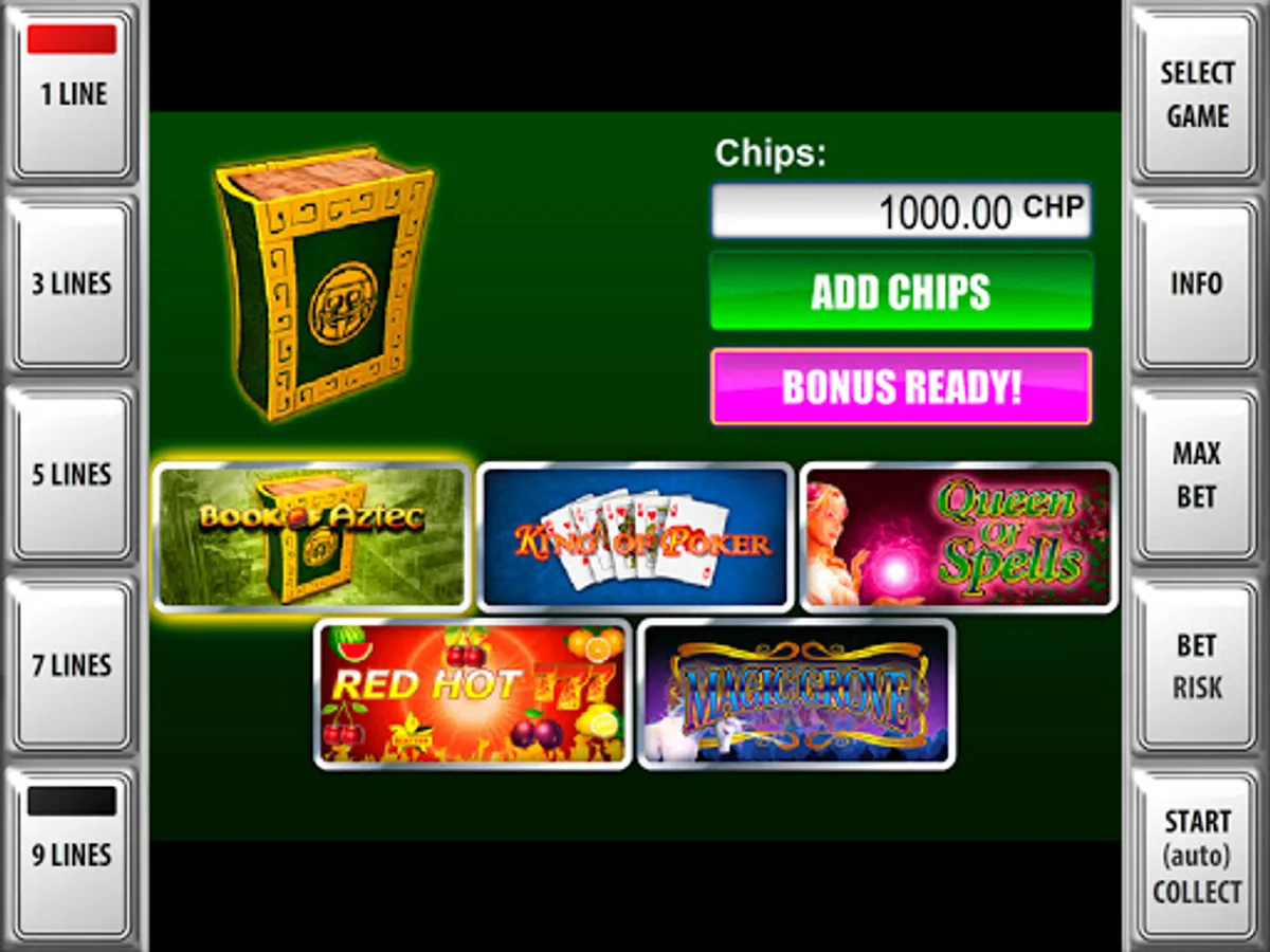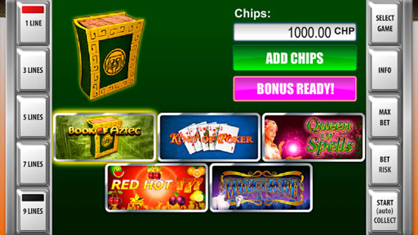 Get chips by playing on lines or double your winnings. Or play for free chips and be content with little.
