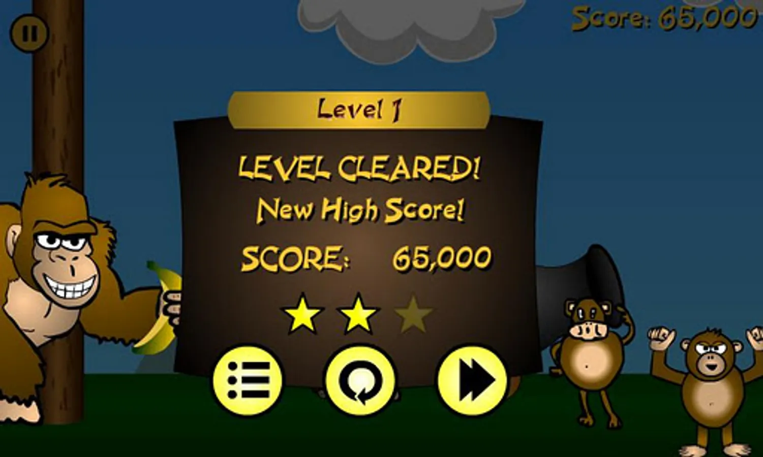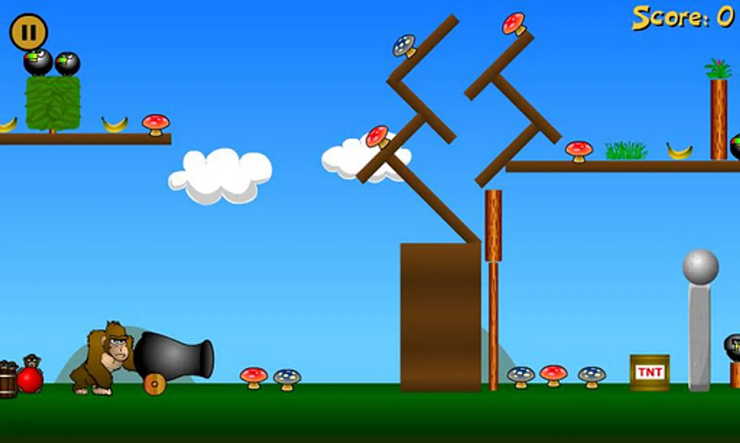 The greedy toucan birds have stolen the apes' bananas, and now the apes are on a mission to get them back! Join the fun, and help the angry apes win back their bananas and scare away the greedy birds.