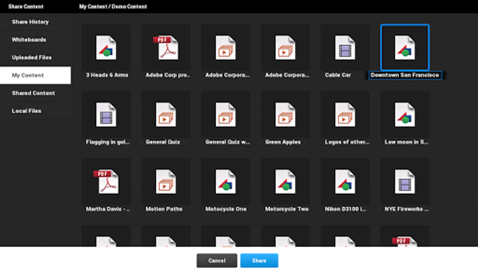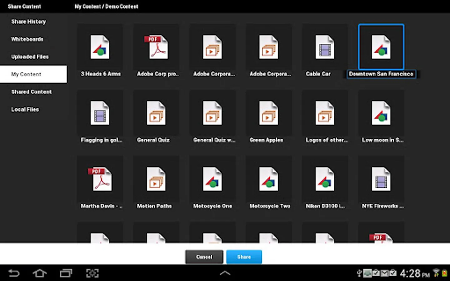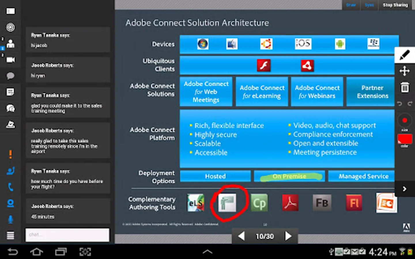 The Adobe Connect application brings all critical capabilities from the desktop to your mobile device, enabling you to drive meetings directly from your Android tablet or smartphone.