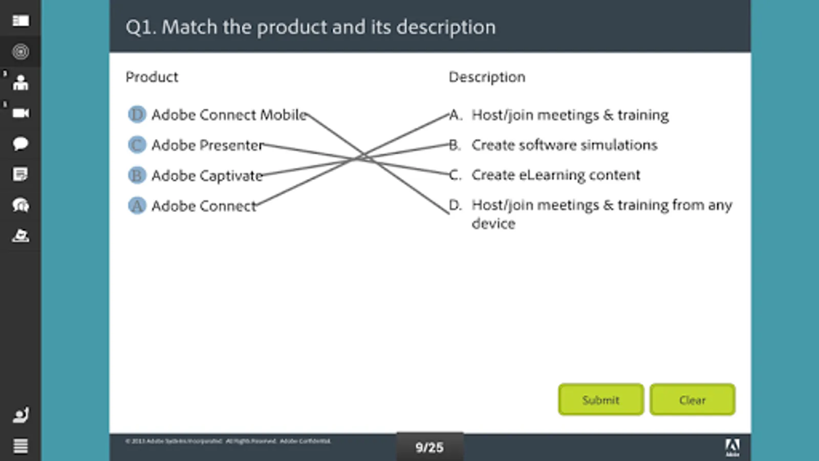 Launch and manage meetings - controlling attendee rights, recording, audio conferencing, and layouts. Share PowerPoint® presentations, PDF documents, and even video from your online library. Use your tablet to smoothly whiteboard and annotate directly on content. Participate in multi-point video conferencing using your device’s cameras. View the whole meeting, or zoom in to see content, chat, ask questions using Q&A, and respond to polls. Use VoIP meeting audio, or chose to join a telephone conference if included with the meeting. Use custom pods to view closed captioning, YouTube videos, learning games, and more.