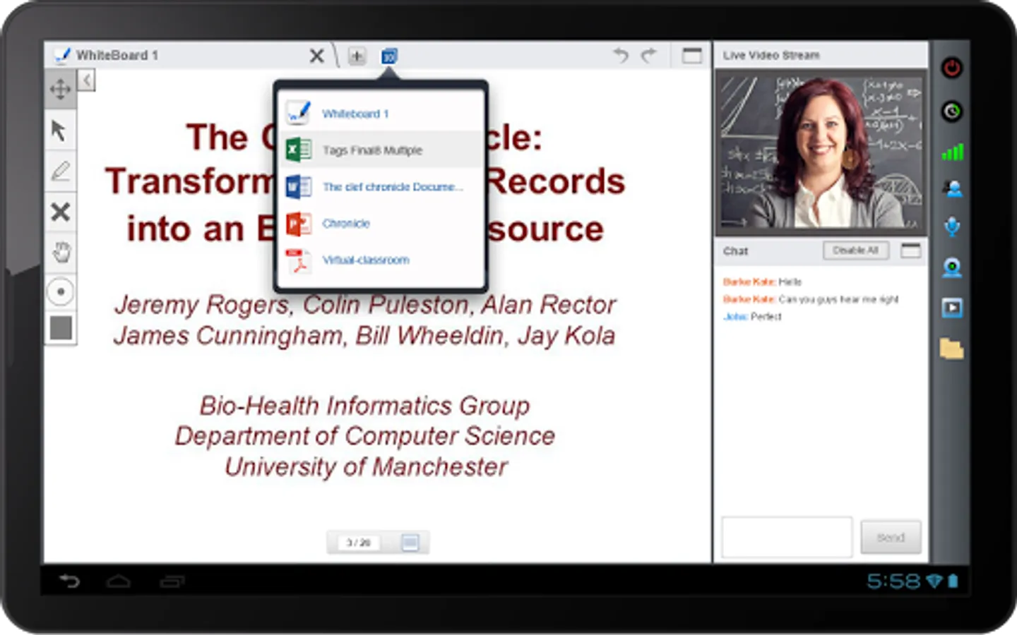 The Virtual Classroom App for mobile teaching and learning enables teachers and students to conduct and attend online classes, anytime, anywhere.