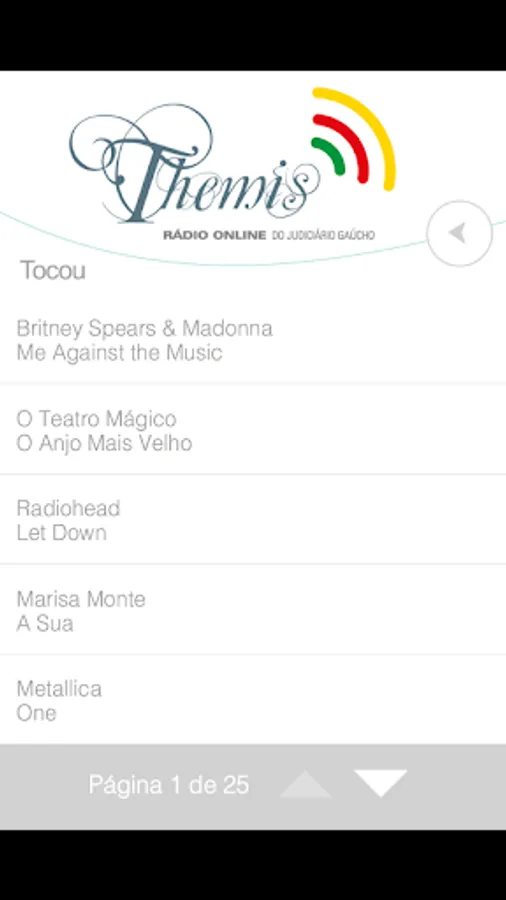 Radio Online of the RS Court. In addition to institutional information, the radio also provides entertainment, good music and lots of information. The collection of 5000 songs of various genres (MPB, MPG, Pop, Pop Rock National and International Jazz, Lounge, Soul, among others). Access by the Court's website, www.tjrs.jus.br, or at www.radiothemis.com.br address.