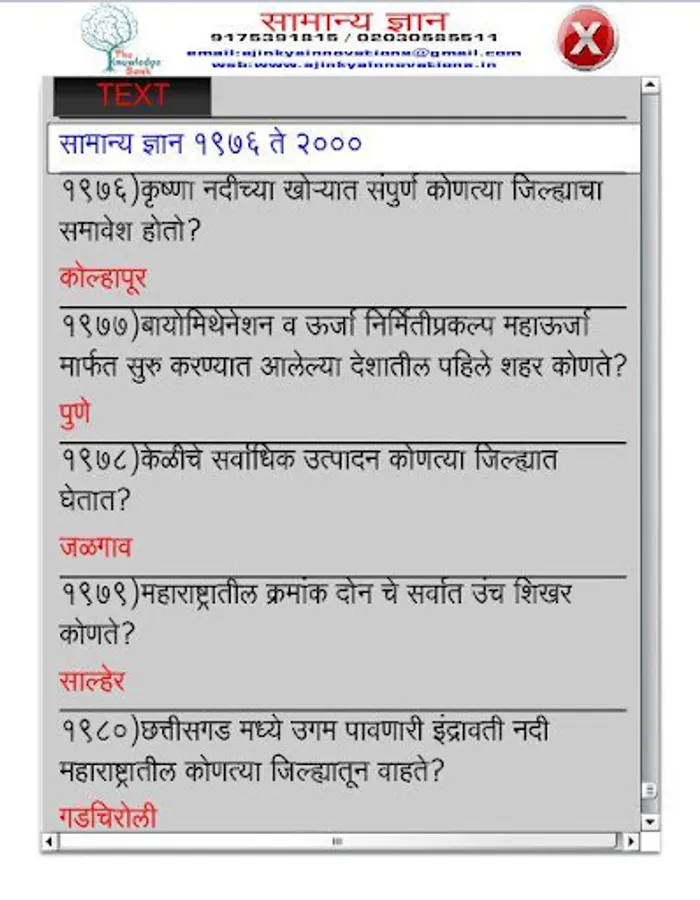 General Knowledge in Marathi सामान्य ज्ञान १००१ ते २००० General Knowledge question and answer in Marathi with audio total 1000 question.Question about Geography Economics Useful for UPSC in Marathi MPSC in Marathi PSI Exam Sti Exam Asst Exam and all competitive Exam