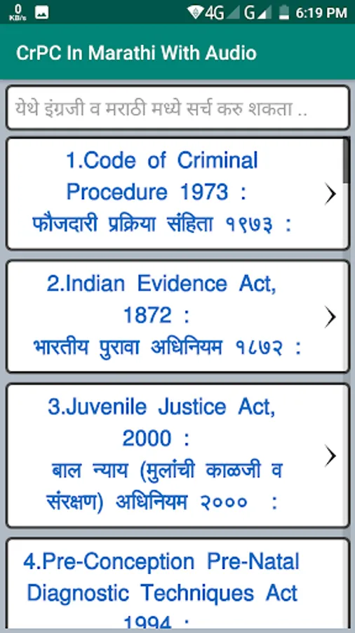 फौजदारी प्रक्रिया संहिता,१९७३ आणि भारतीय पुरावा अधिनियम १८७२ ऑडियो सहित हे अॅप पेड अॅप आहे. परंतु ऑनलाईन फ्री वापरु शकता. पोलीस उपनिरीक्षक मर्यादित विभागीय स्पर्धा परीक्षा व स्पर्धा परीक्षेसाठी उपयुक्त. तसेच फॉरवर्ड रिव्हर्स फंक्शन अॅड केले आहे.
