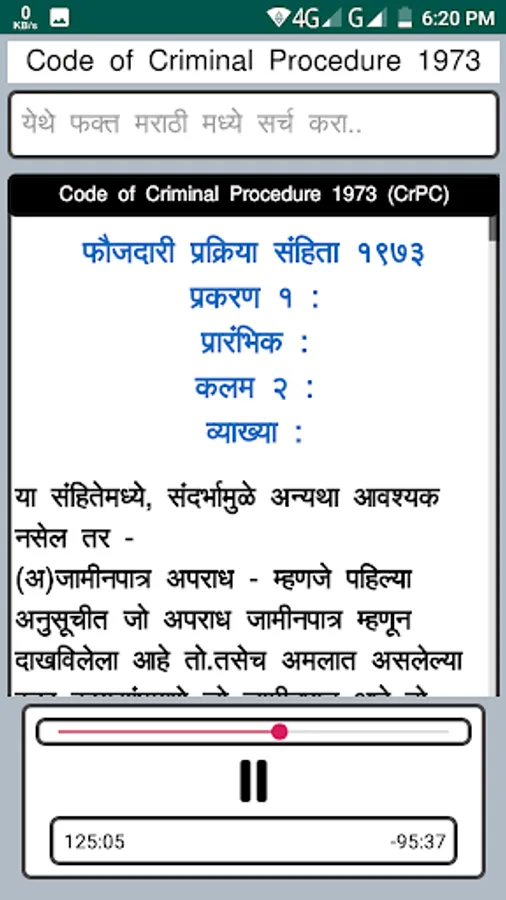 Code of Criminal Procedure 1973 and Indian Evidence Act 1872 in Marathi with audio.