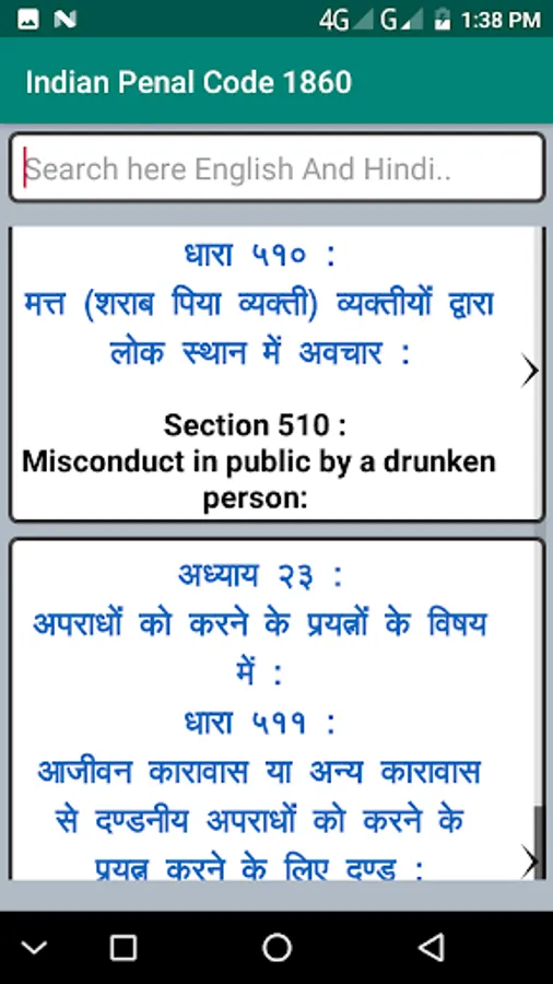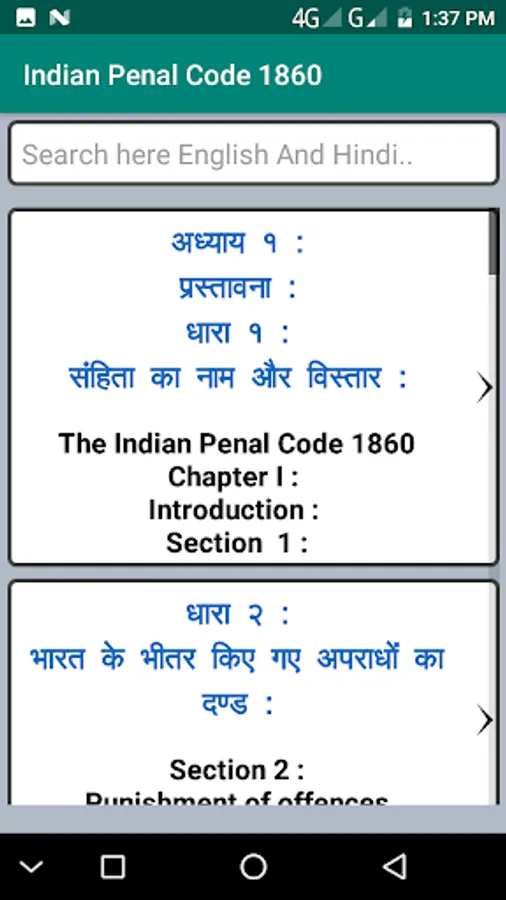 This app in Hindi online all sections with update amendment. IPC in Hindi useful for all law student.Now in this app all section with chapter wise more user friendly. Totally Free offline also search by section available. for demo see images.