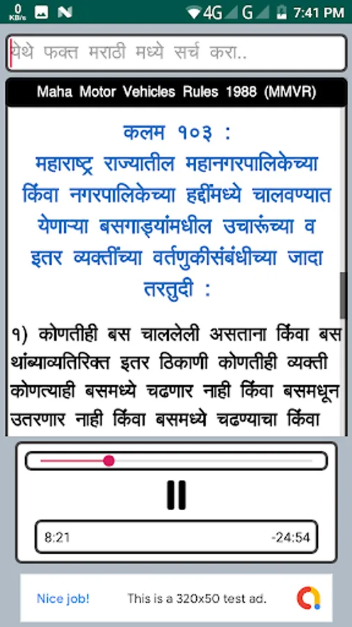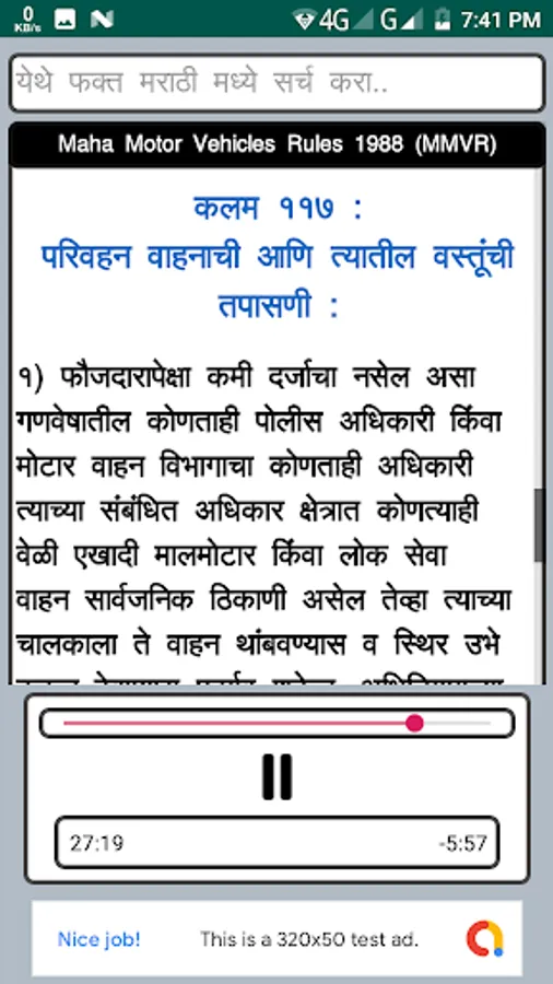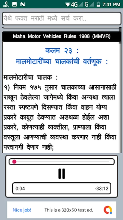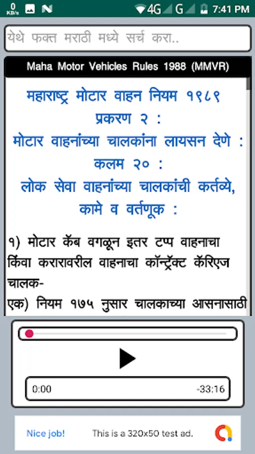 The Maharashtra Motor Vehicles Rules 1989 in Marathi with audio. It is part of 17 minor Act in Marathi