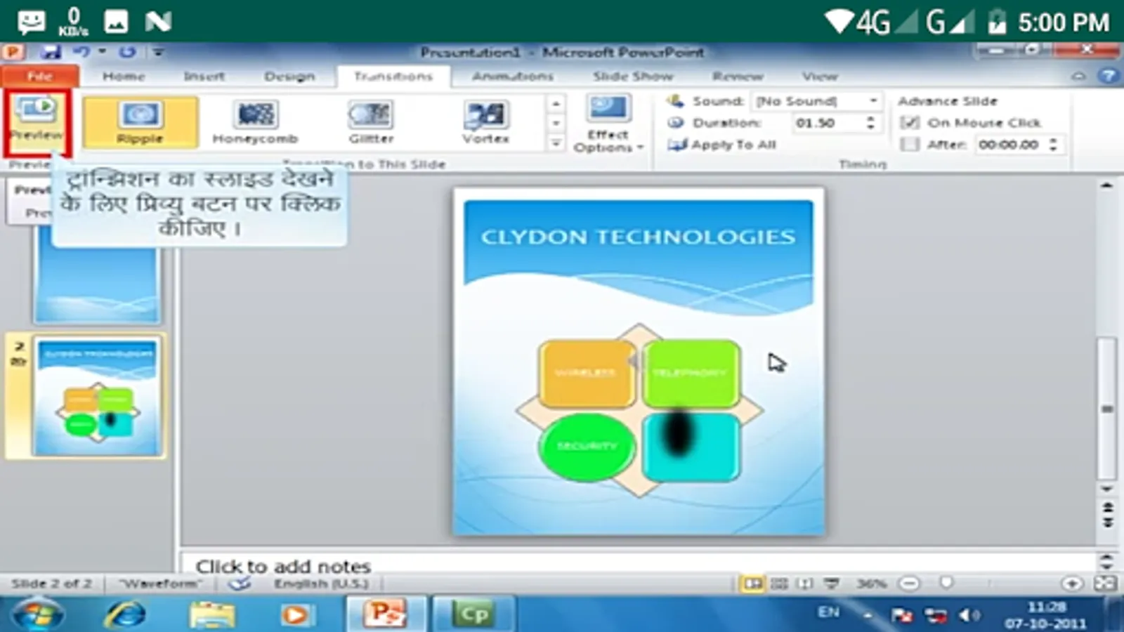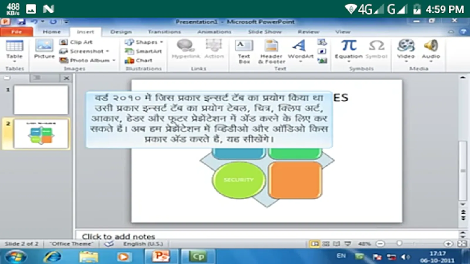 अॅड अनीमेशन कॉपी और रिअरेंज इन्सर्ट पिक्चर स्लाईड मास्टर स्लाईड शो सेव और सेंड के बारे में भाग २ में सिखिये ।