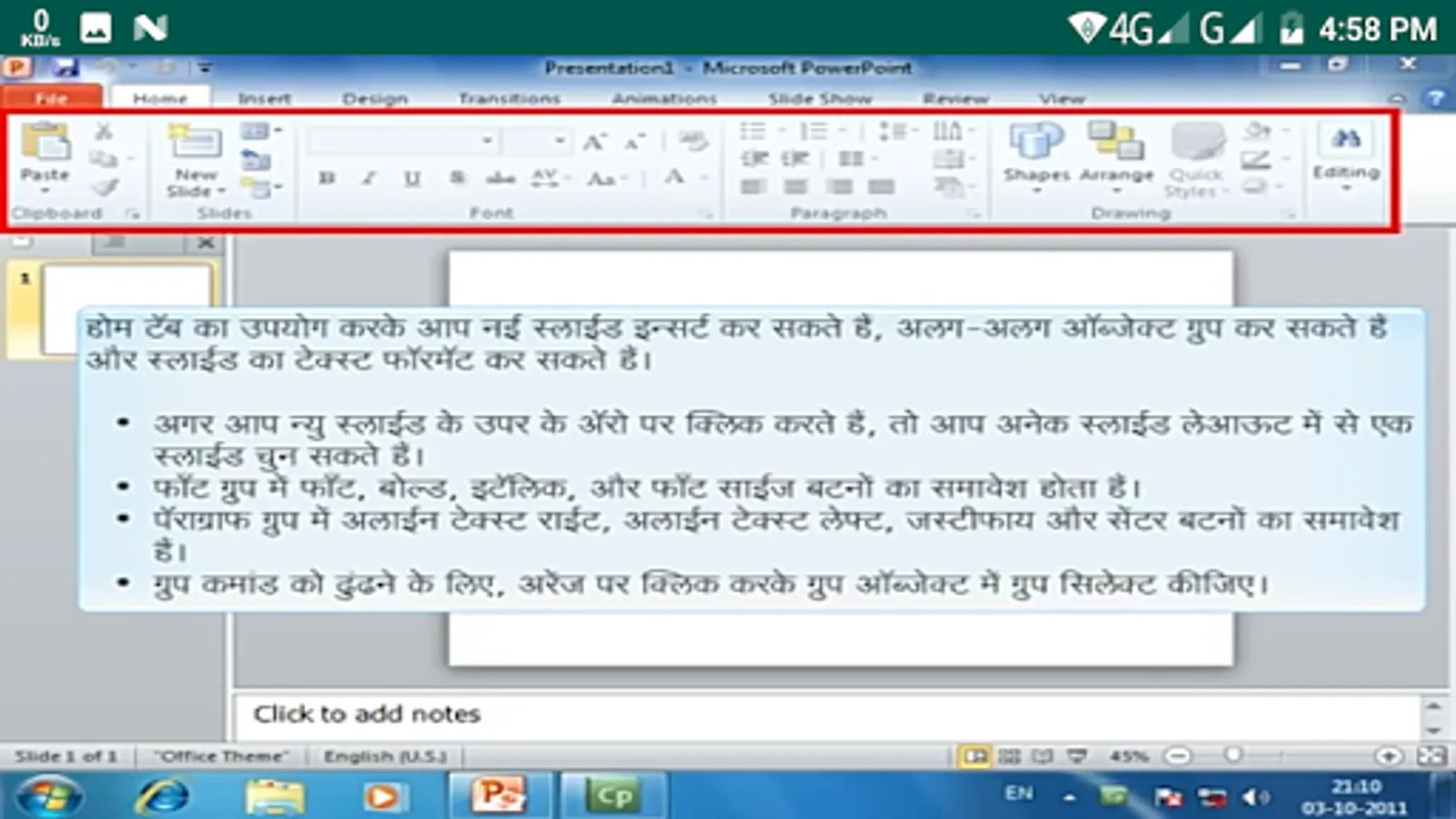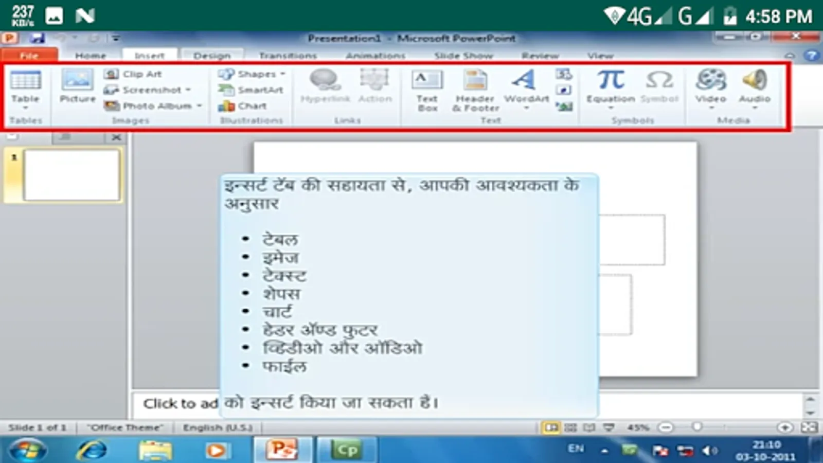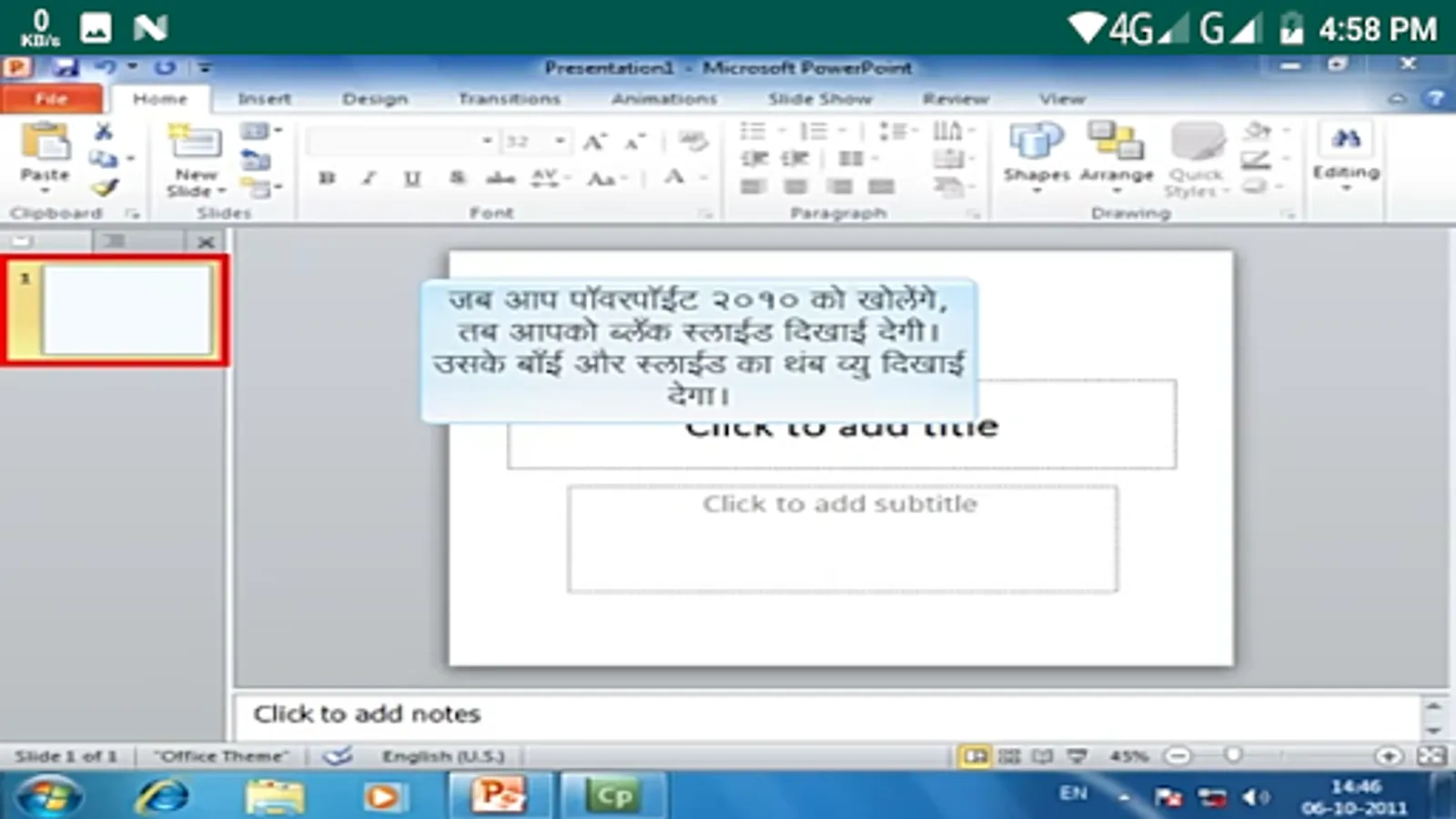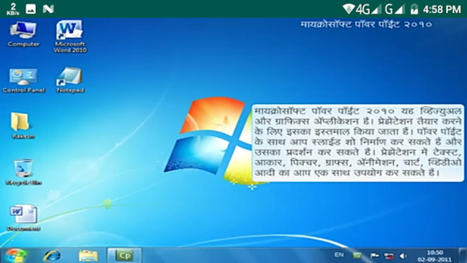 कम्प्युटर कोर्स हिंदी में : एम एस पॉवरपॉर्इंट २०१० भाग १ इस अॅप में