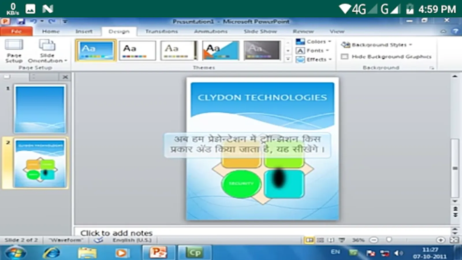 learn how to Apply Theme and Background to Slide.learn how to Add transition to slide.