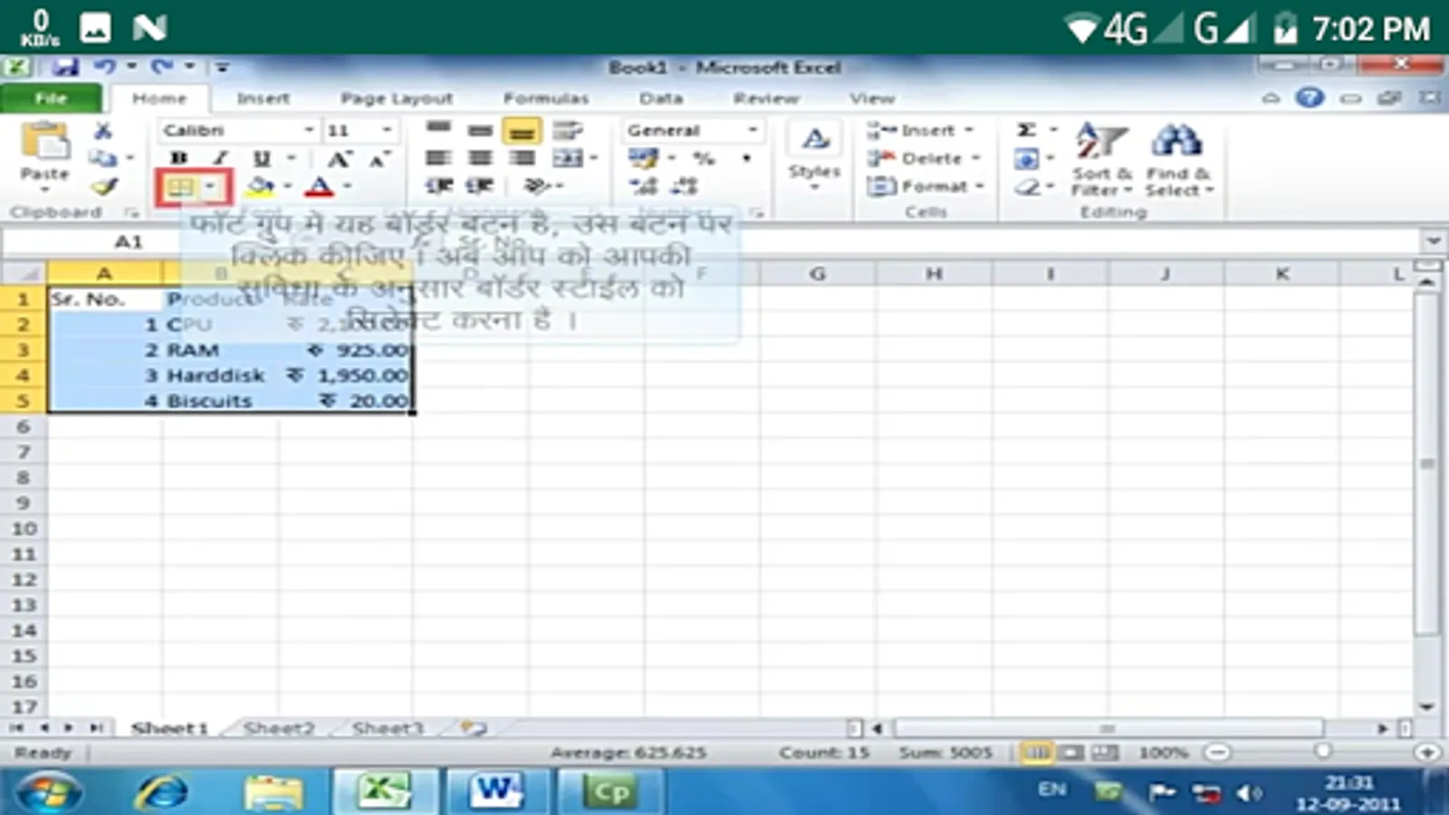 एक्सल २०१० बेसिक्स वर्कशिट में डाटा एंटर करना फॉरमॅट नंबर सेल शेडींग एक्सल टेबल तयार करना