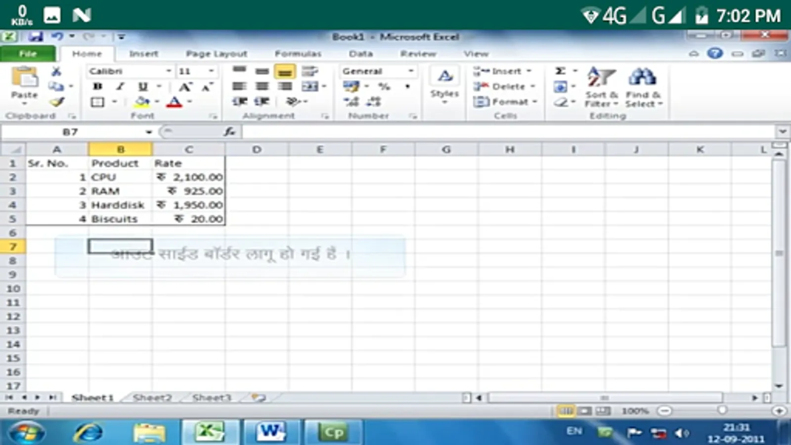 सेल बॉर्डर अॅड करना