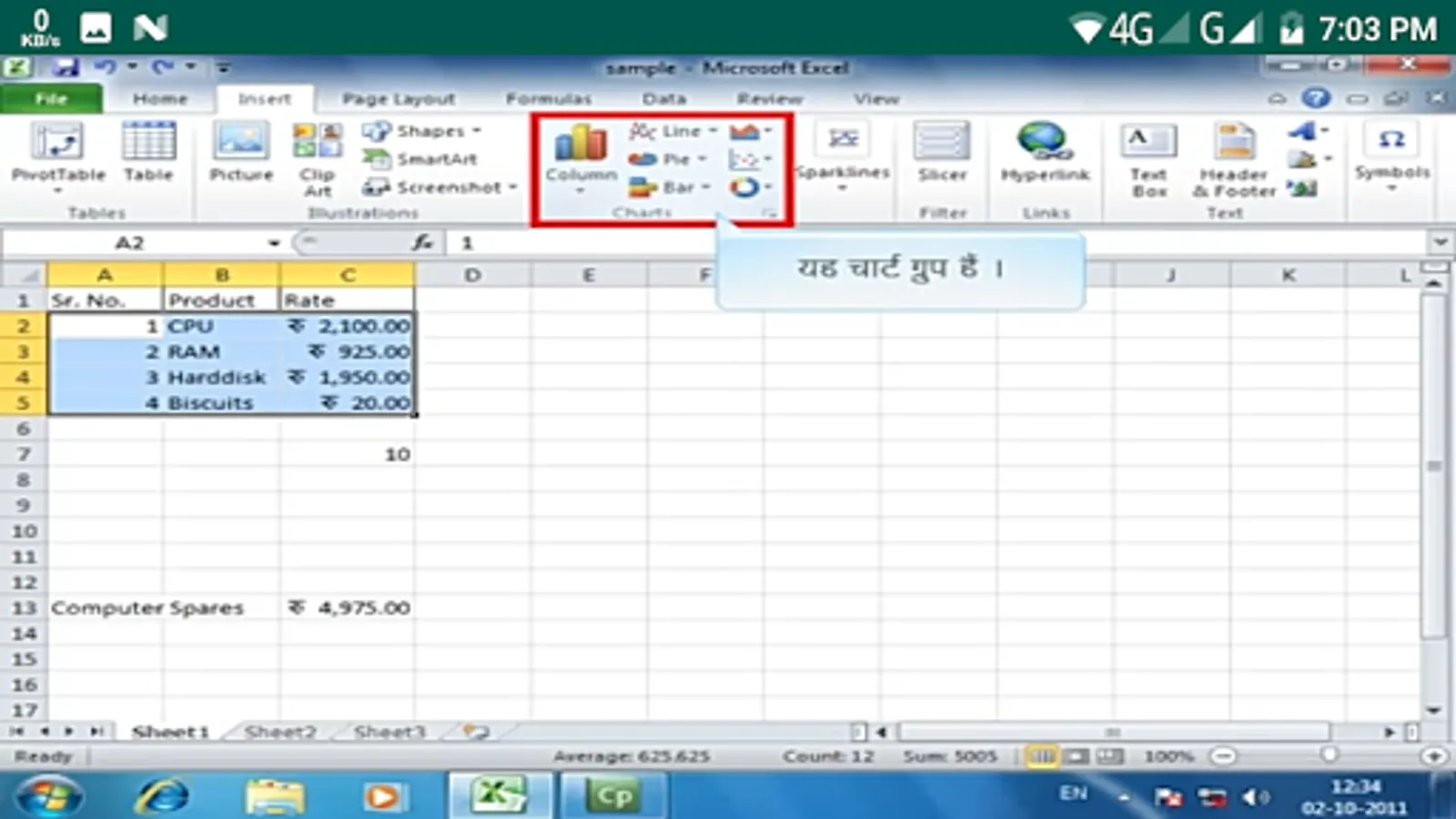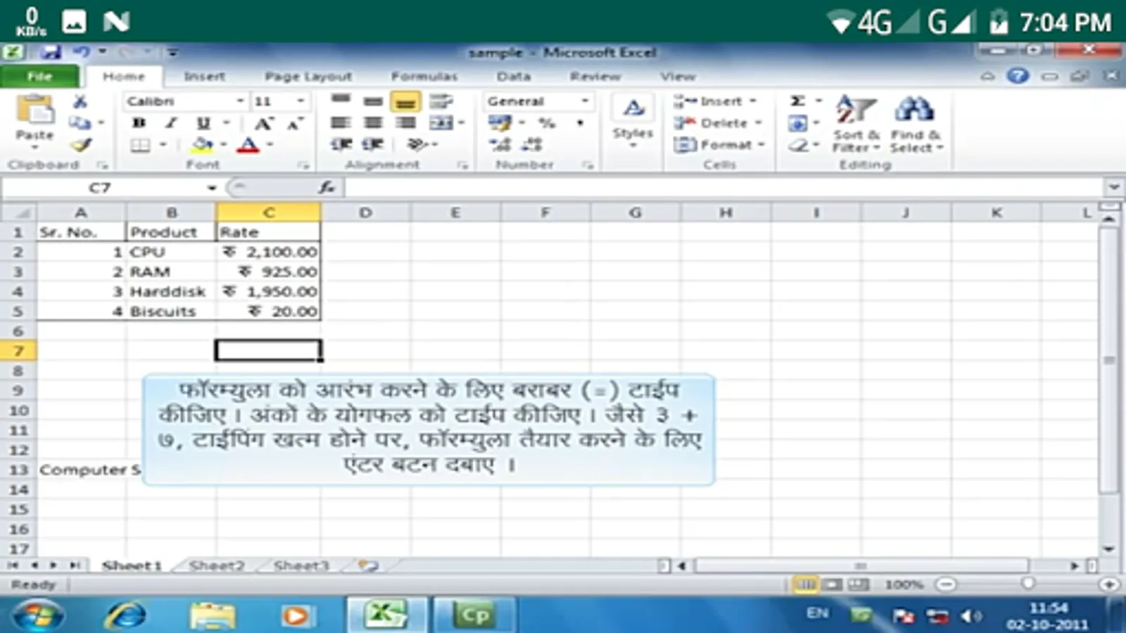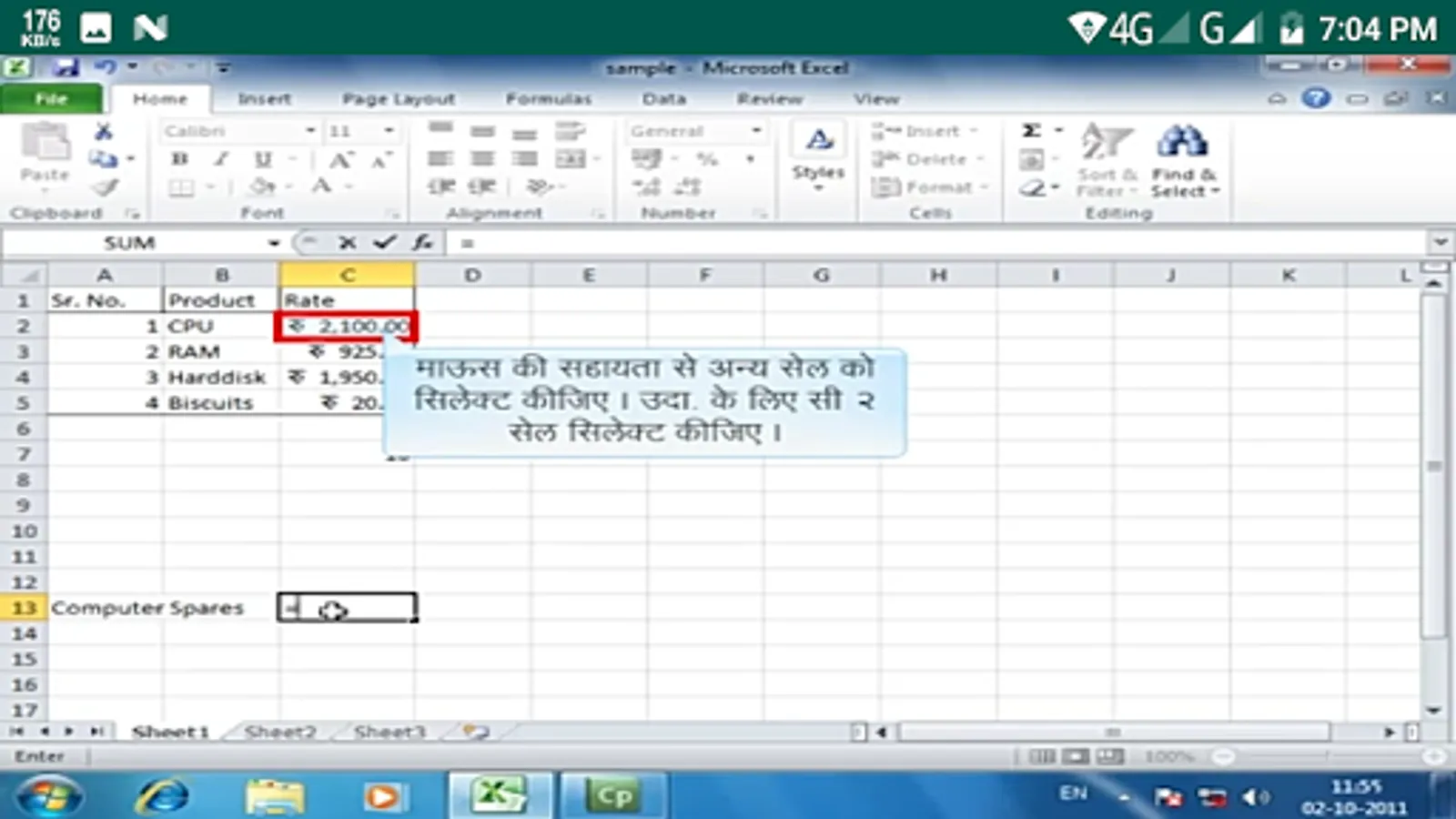 Step by step video lecture of M S Excel in Hindi.