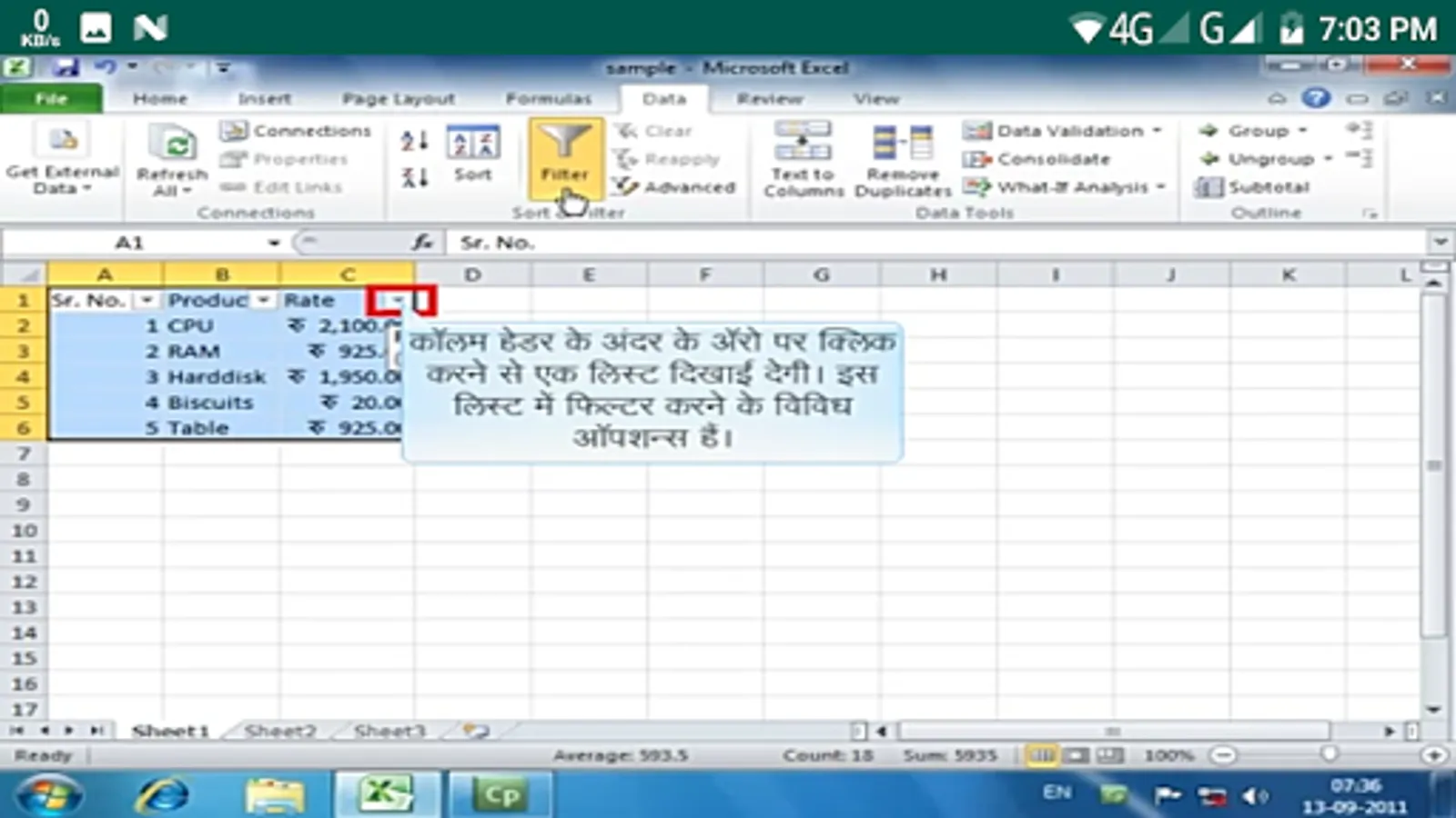 Microsoft Excel video tutorials in Hindi.