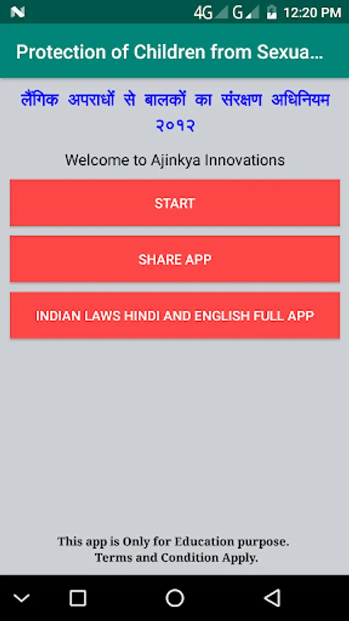 This is a educational app. This is useful for all law student, police department and common people also. This app is in two language English and Hindi.