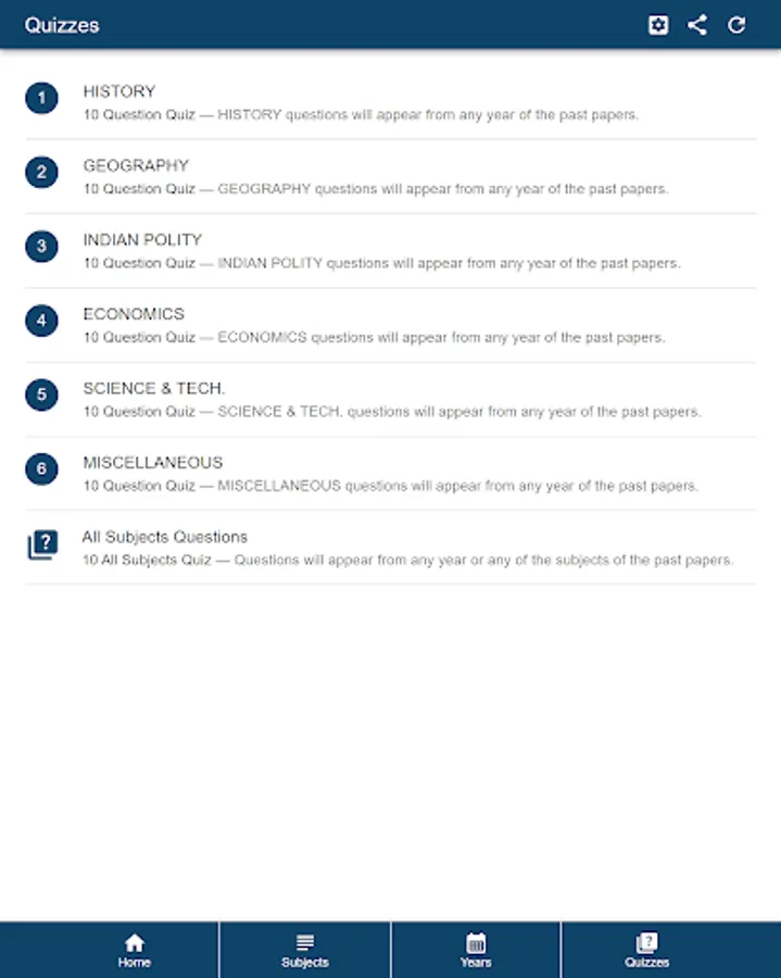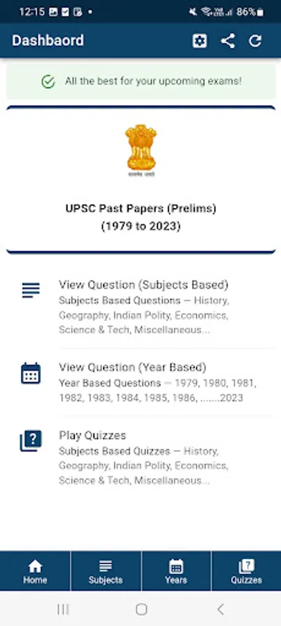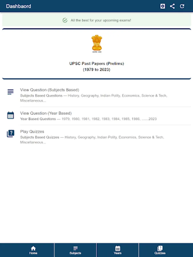 This app will help Civil Services aspirant to examine the standard and trend of the coveted examination. We will soon be launching the pro versions of this exam such as – All the past paper prelims exams of G.S with explanations, Notes of each subject, Sample Paper for prelims and mains, Essays and many more.