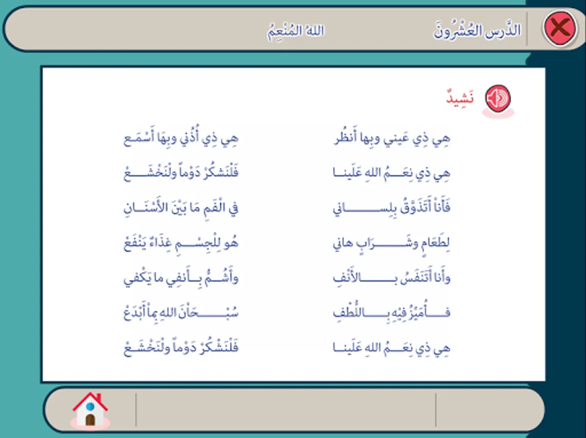 - يتعرَّف أن الله خالق كل شيء . وهو واحد لا شريك له ، نعبده وحده ، ونتمسّك بدينه ، وسنّة نبيّه الكريم.