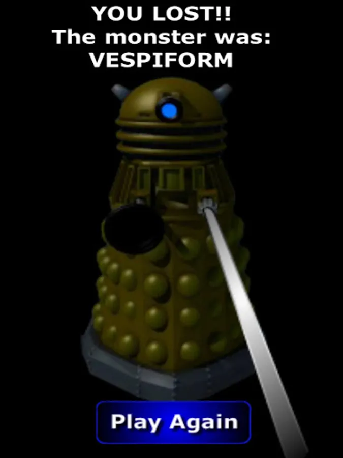 To do this simply guess the letters of a Doctor Who monster and you'll win the game, destroying the Dalek and saving the poor victim from his undeserved deadly fate!!