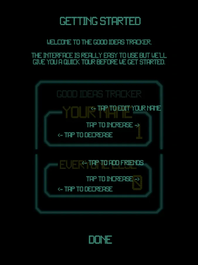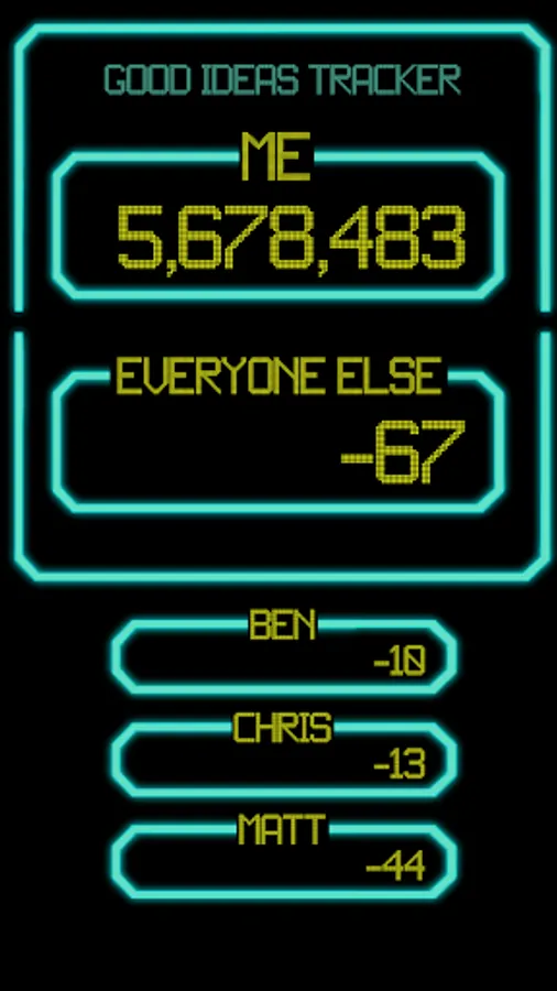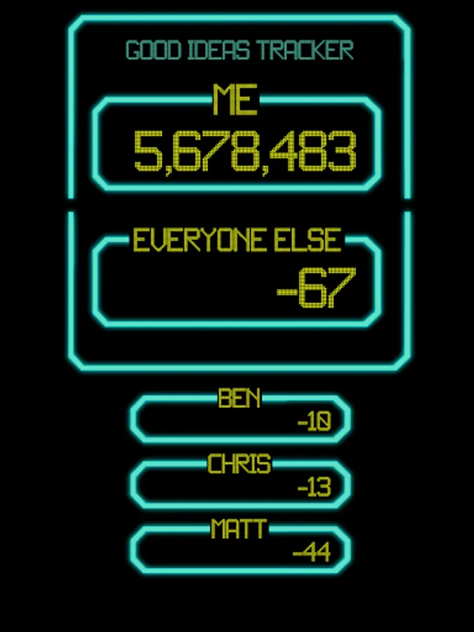 Have you ever wanted to keep track of how many good ideas you have and how many bad ideas everyone else has? Of course you have. The "Good Ideas Tracker" is perfect for you.