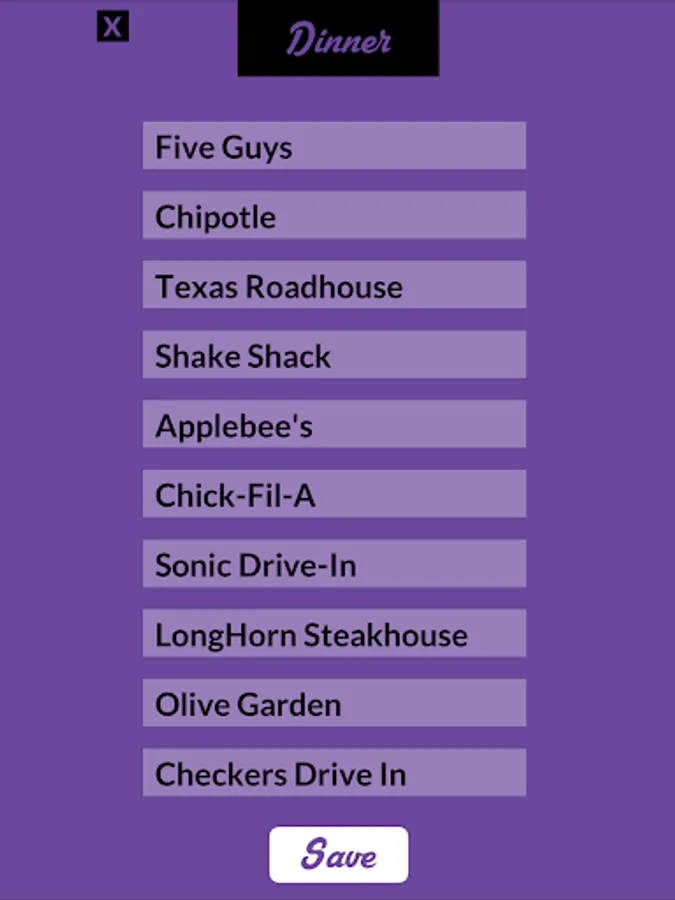 We've all been there and it drives us nuts. This app is designed to solve this very simple problem. We all have our list of go-to places for breakfasts, lunches and dinners. So just tell us your go-to spots and when it's time to decide where to go.. 1 tap will make the decision for you. It's that easy.