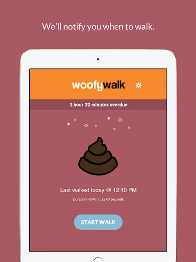 Everyone in your home will receive a Woofy Walk notification from your dog when they've been walked or when they need to be walked . Woofy Walk takes away the confusion around dog walking in a busy home.