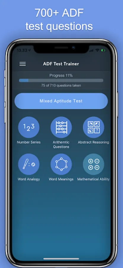 Practice up to 700+ questions divided into the 6 test categories of the ADF aptitude test.