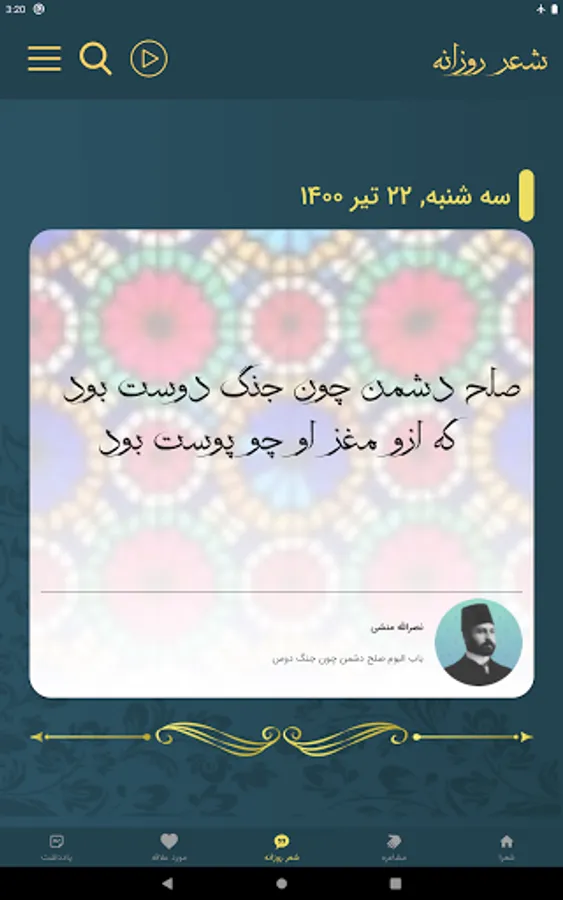 Abu al-Ma'ali Nasrullah ibn Muhammad ibn Abd al-Hamid Munshi (after 555 (lunar) - before 583 (lunar)) Nasrullah, nicknamed Abu al-Ma'ali, was one of the writers and secretaries of the Ghaznavid court in the 6th century AH. His origin is according to Haft Iqlim from Shiraz and according to another narration from Ghazni.