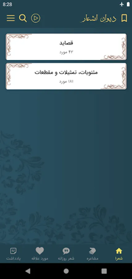 Use the top right (+) button in the poems to take notes.