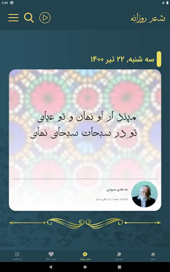 Mullah Hadi Sabzevari software is a collection of poems that have been collected with great effort.