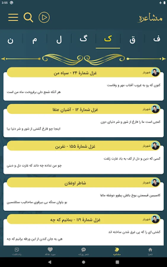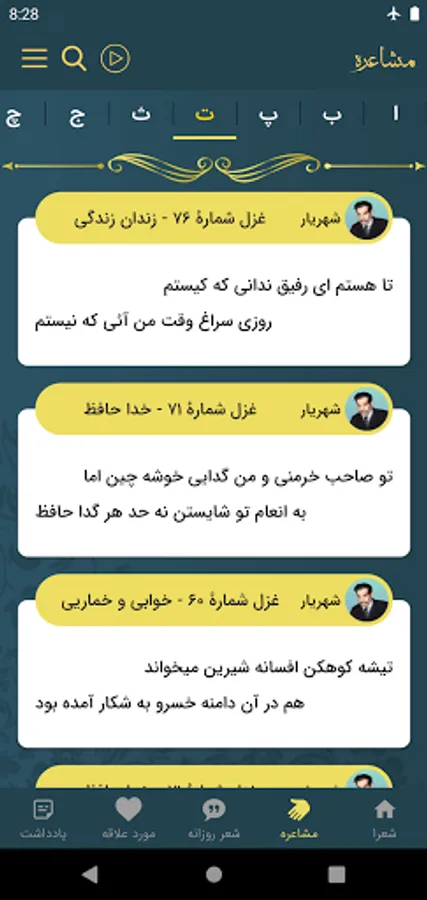 Seyyed Mohammad Hossein Behjat Tabrizi (born 1285 - died 1988) alias Shahriyar (formerly Behjat) was an Iranian poet from Azerbaijan who wrote poetry in Azerbaijani Turkish and Persian. He was born in Tabriz and according to his will was buried in the Tomb of the Poets of this city. September 17 has been named "Persian Poetry and Literature Day". The name of this name is the anniversary of the death of Shahriar, the famous poet of our country.