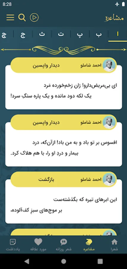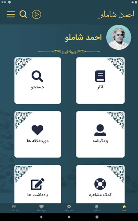 Ahmad Shamloo (3 Azar 1304 - 2 Mordad 1379) alias A. Bamdad or a. Sobh was an Iranian poet, writer, journalist, researcher, translator, lexicographer, and one of the founders and secretaries of the Writers' Association of Iran before and after the revolution.