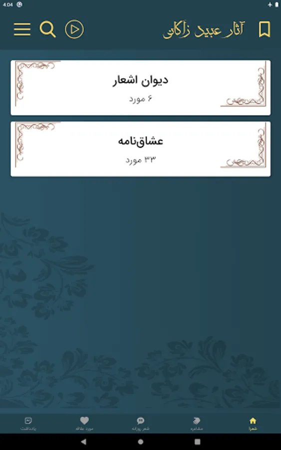 Obaid Zakani software is a collection of poems that have been collected with great effort.