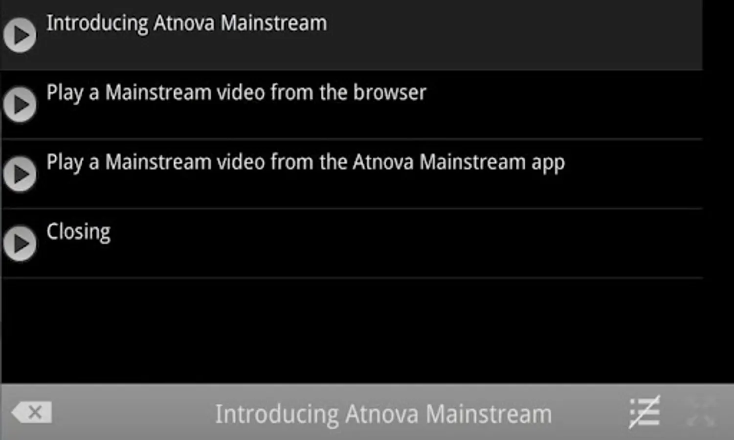 The app Atnova Mainstream Mainstream lets you watch videos on your Android device. If a video Mainstream access from your browser, the app will open and display. If you open the app directly, you can see open access Mainstream videos, tutorials and the Help screen.