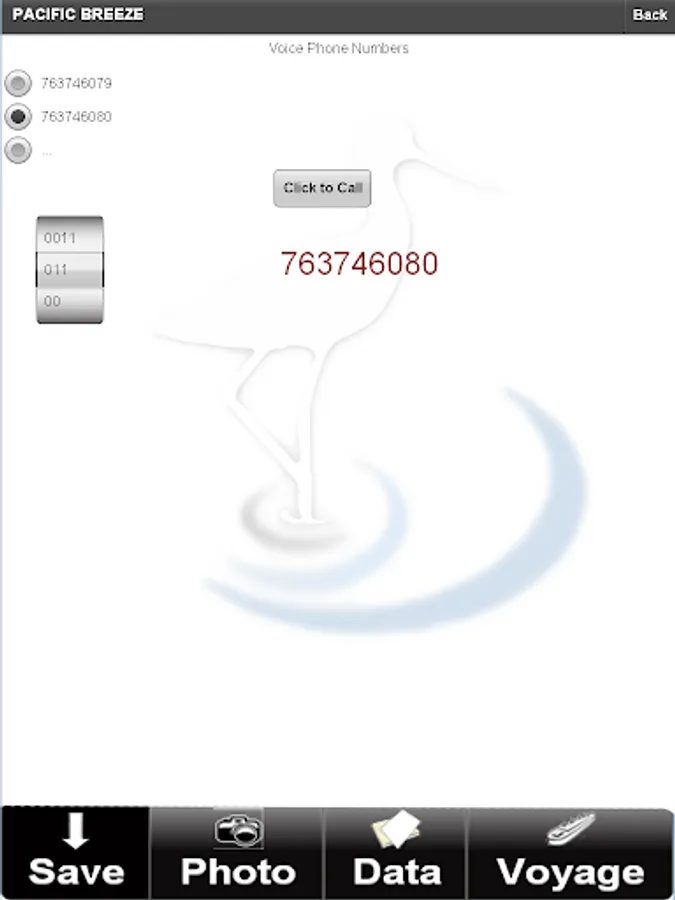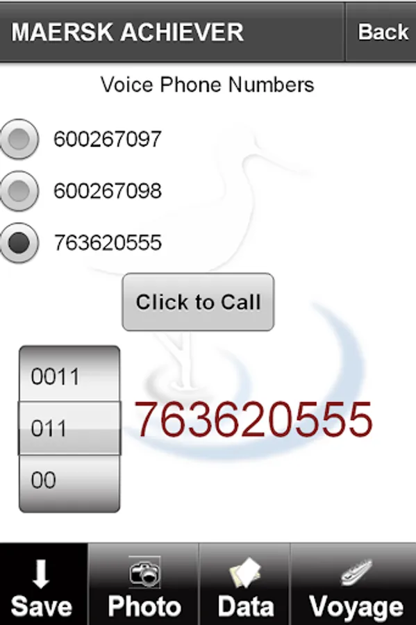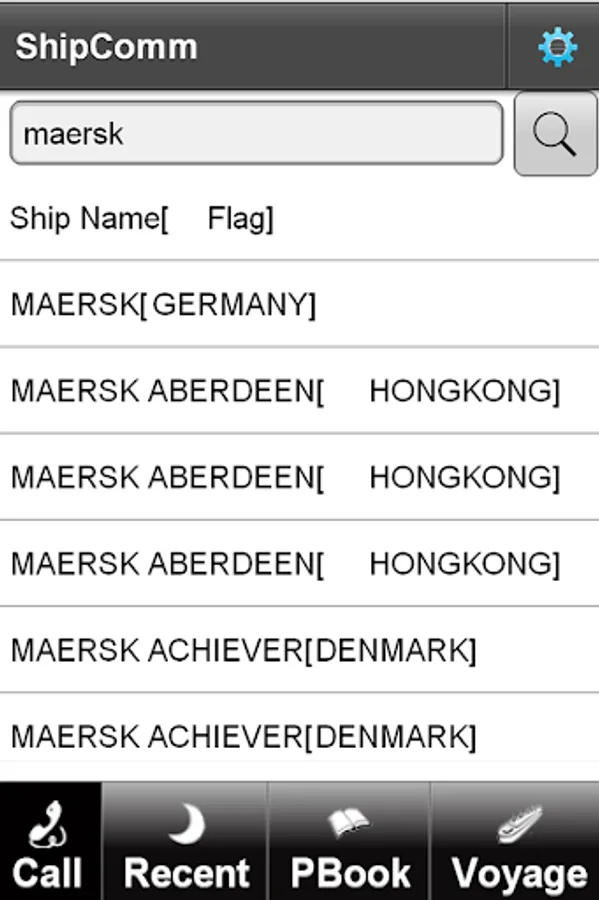 Just type in your ships name , the app will search for its current phone number. If the ship is not fitted with Voice protocol system such as System B , Fleet Broadband you will be informed. In fact it will list the ship with all available system on board.