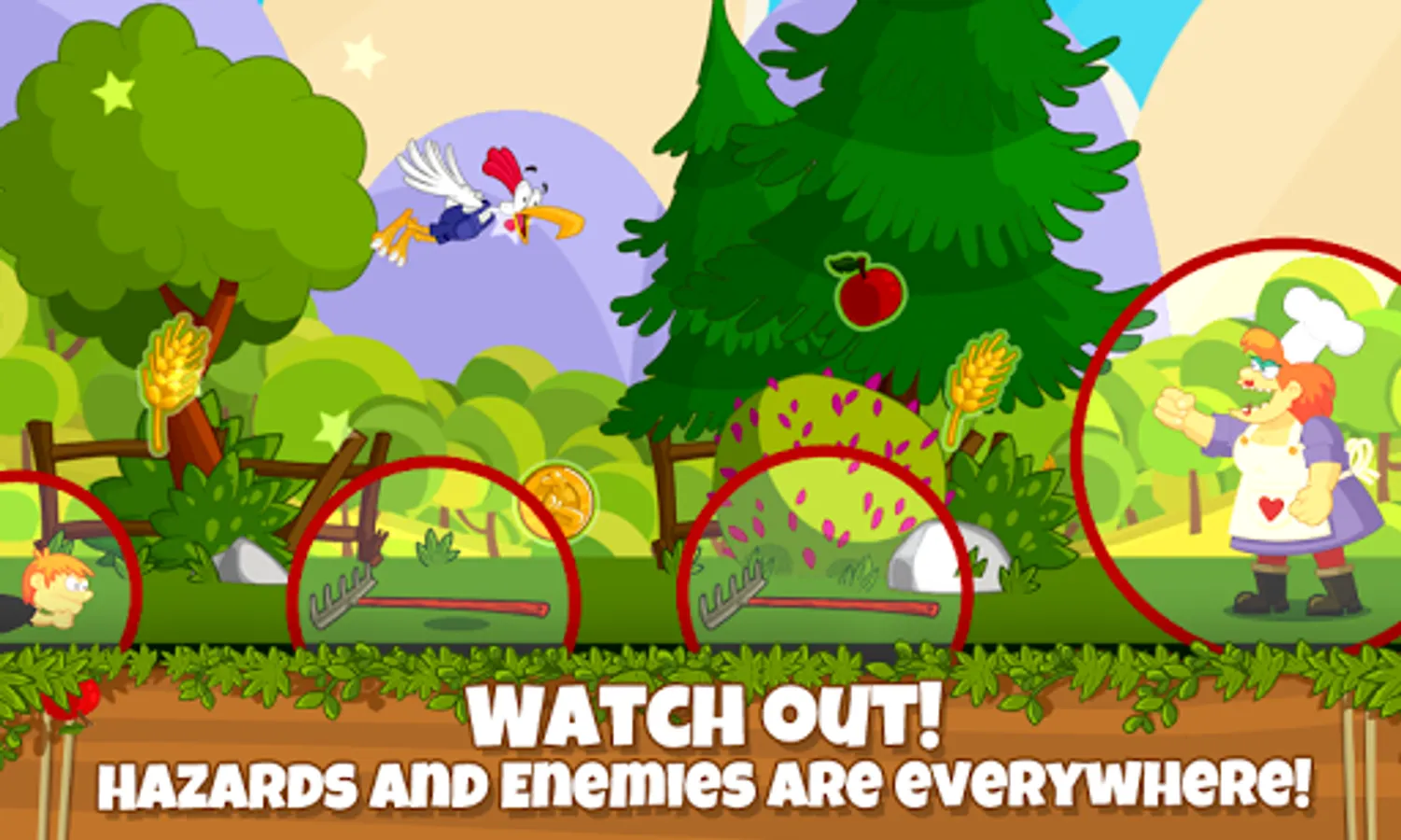✩ surprising hazards and enemies that will try to slow the Super Chicken down and finally catch him