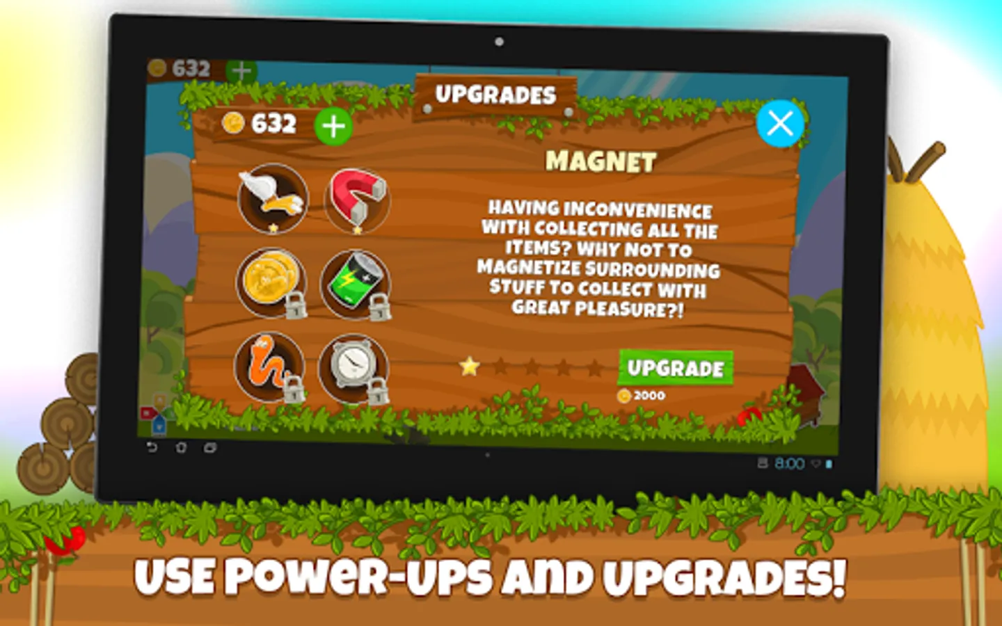 ✩ progressive gameplay: level up to unlock awesome items (upgrades, power-ups, gadgets, food)