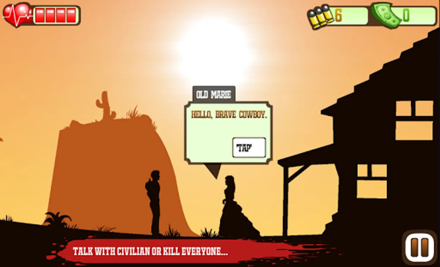 Begin your journey in wild world of cowboys. Steal, thrill and kill everyone who stay on your way. Remember, best your friend - your gun. But don't forget about ammo. Empty gun - immediate death in this rough world.