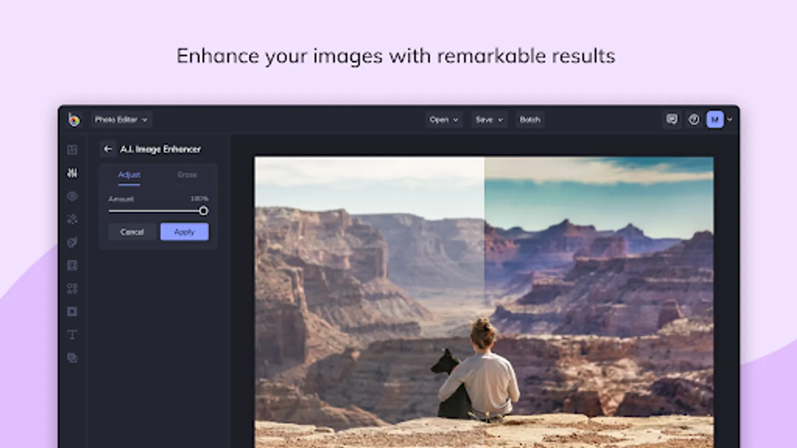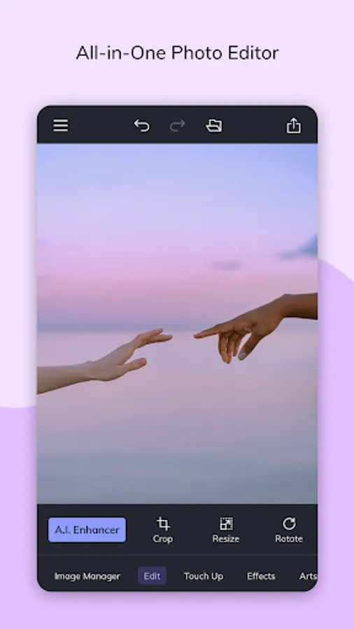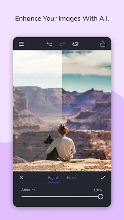 There's a lot of trial and error and fine-tuning involved in enhancing a photo. Our A.I. Image Enhancer takes the guesswork out of photo editing. With a single tap, it'll make colors more vibrant and add a touch of contrast to enhance details, giving your photos what they need to really pop.