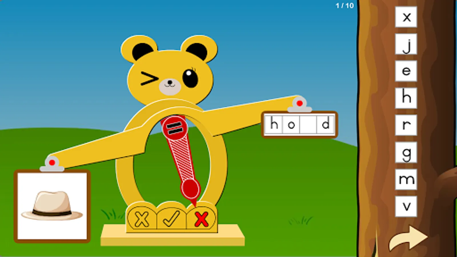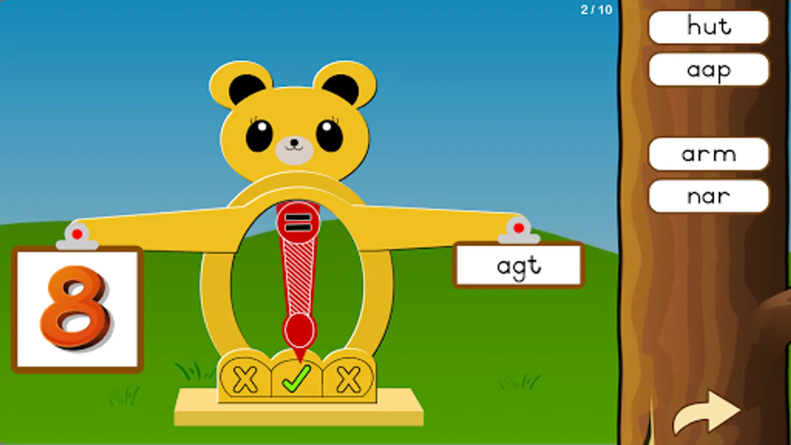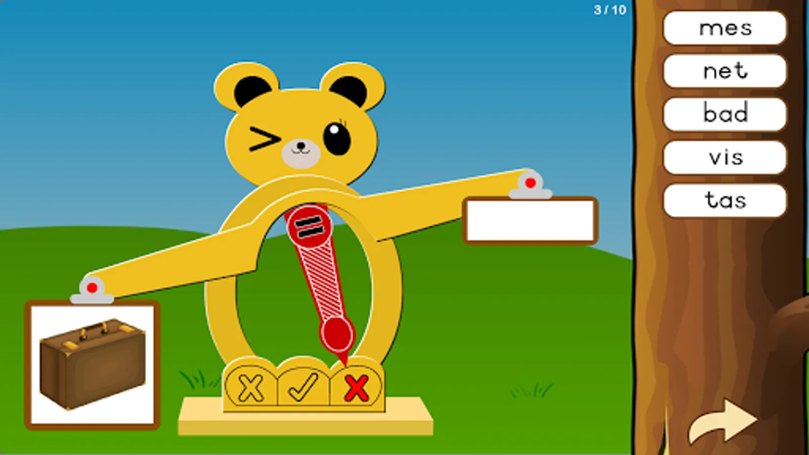 In hierdie speletjie moet jy die skaal laat balanseer deur die prentjie met die korrekte spelling te verbind.