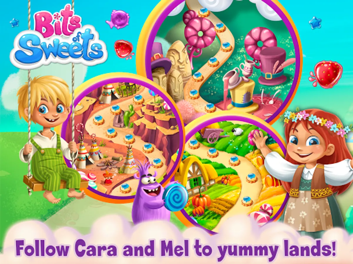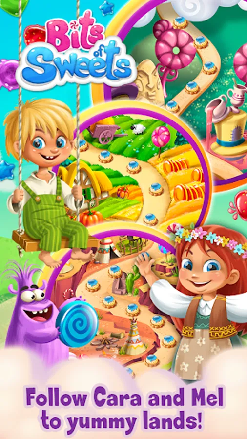This addicting match 3 puzzle will take you to amazing sugar lands and jelly valleys, where you will mix bonbons and crush cookie packs with kids on the run!