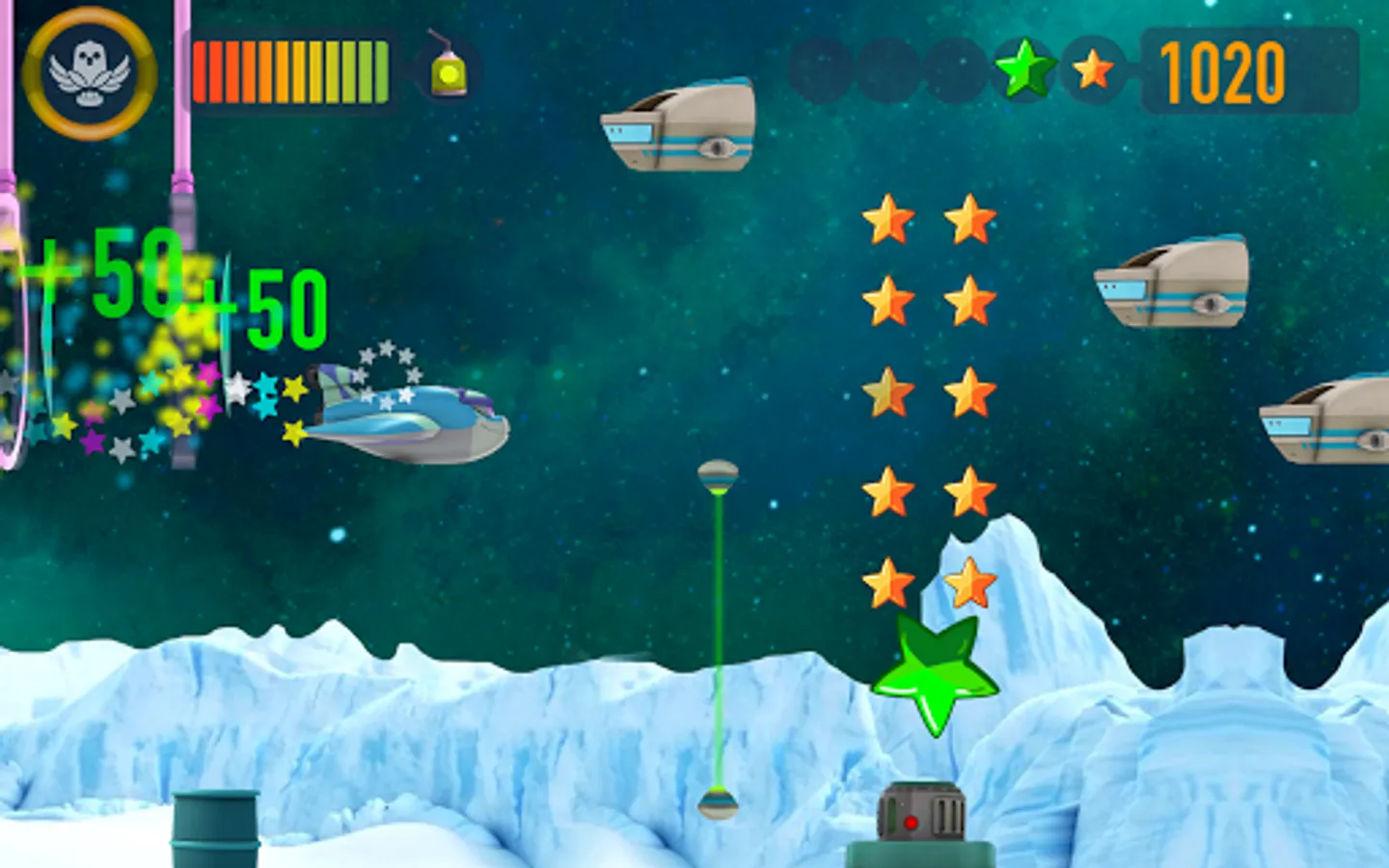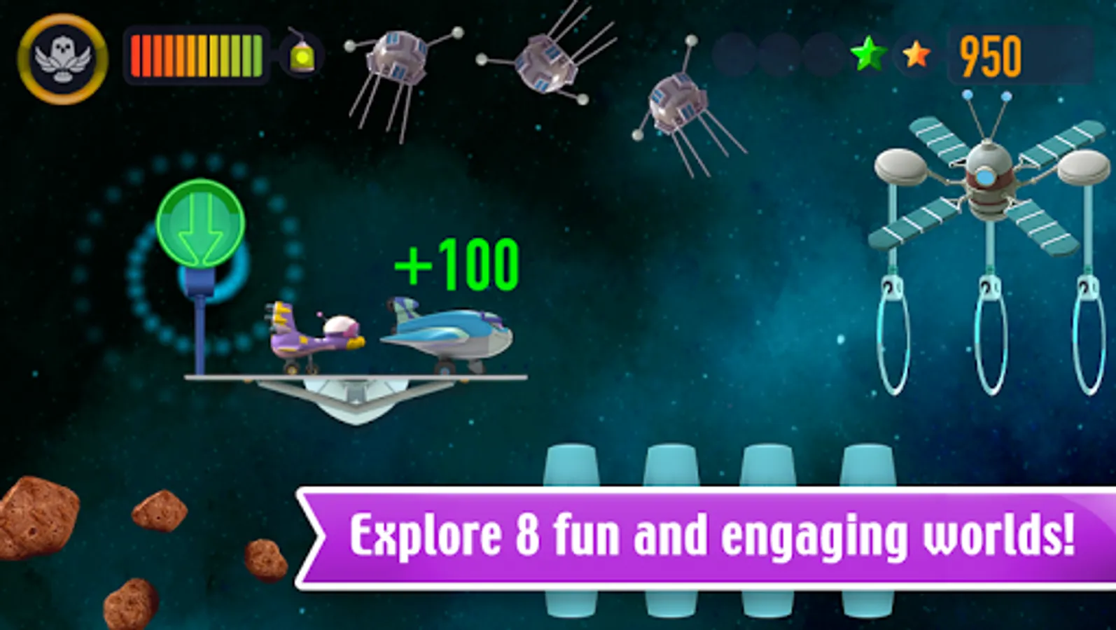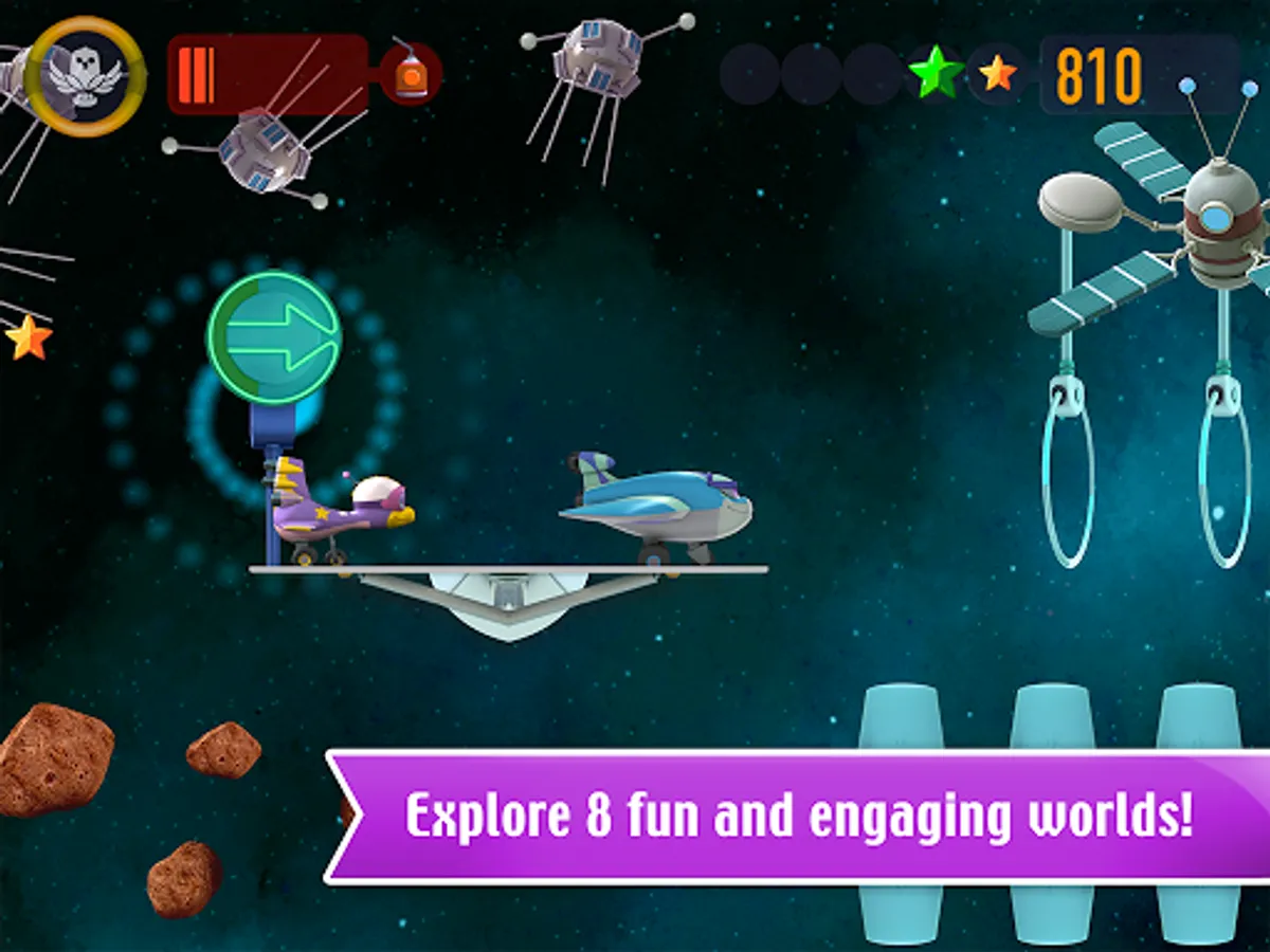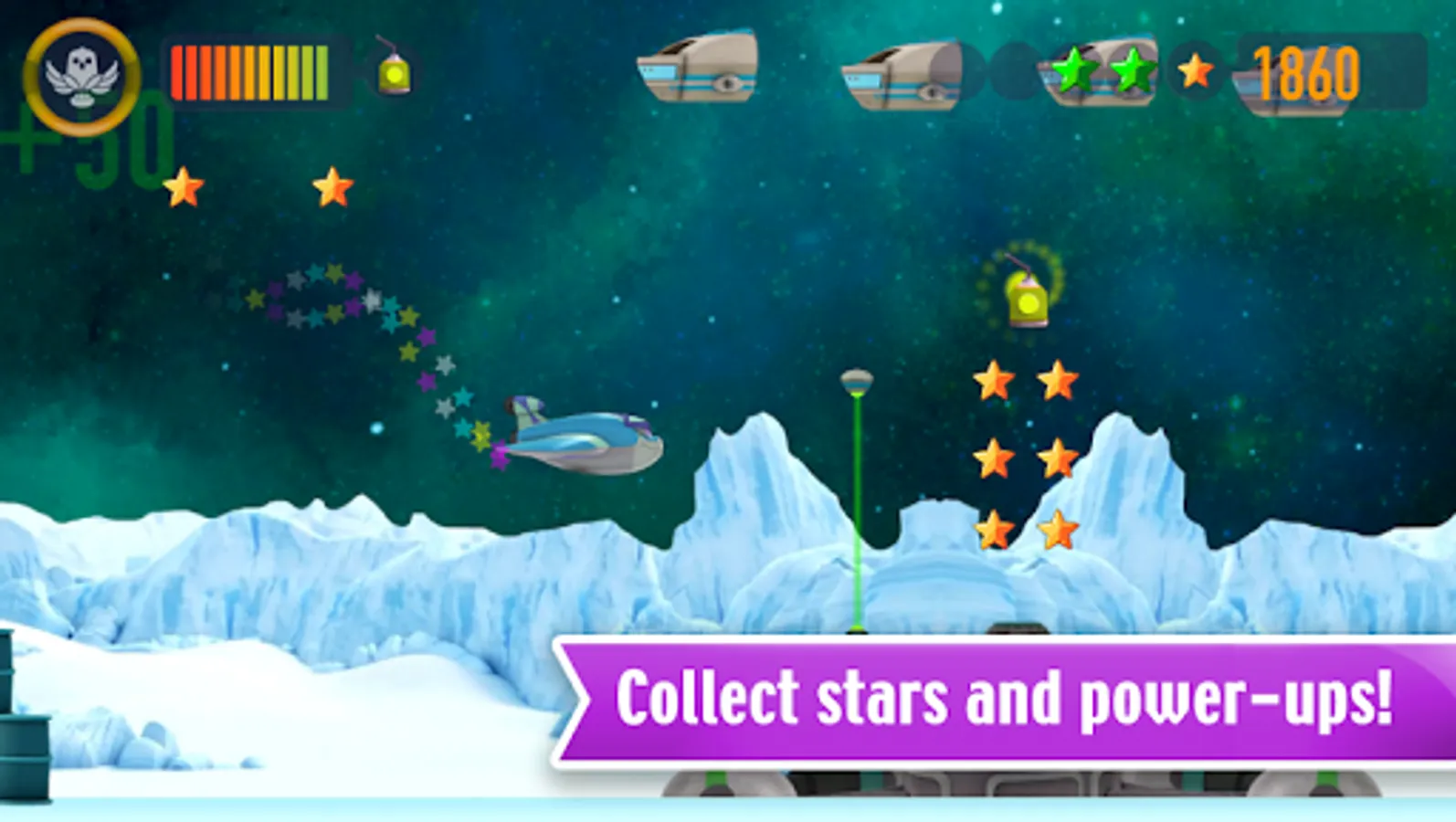 A twist on the traditional flying game, kids can tag-team between four characters — Eagle, Robyn, Hawk, and Starling — as they soar through space and around Stardust Bay, collecting stars and avoiding obstacles... just don't run out of fuel!