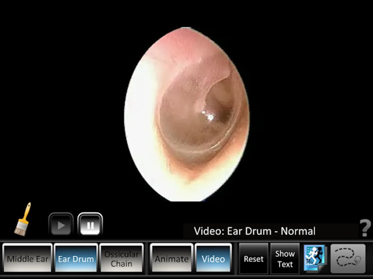 • Video: a large close-up video of a real eardrum. Stop and pause button for video.