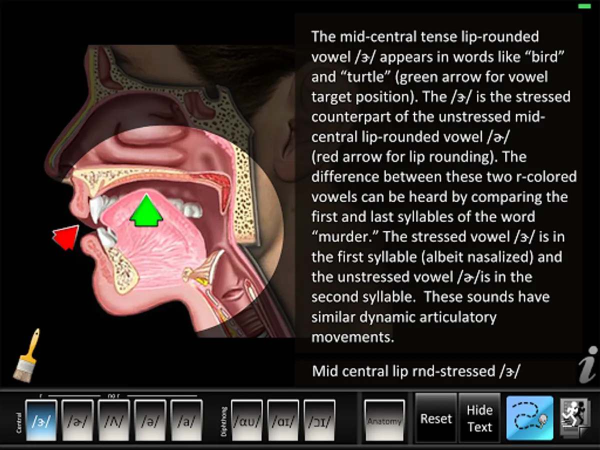 The Speech Articulation: Vowels Central/Diphthong app authored by Fred D. Minifie, Ph.D, provides valuable instructional/clinical tools for speech-language pathologists, otolaryngologists, speech scientists, linguists, teachers of singing and other professionals. The app includes five central and three diphthong vowel dynamic animations with sound plus a key view for each of the tongue shape and placement for the structural movements involved in the production of the vowels of American English.