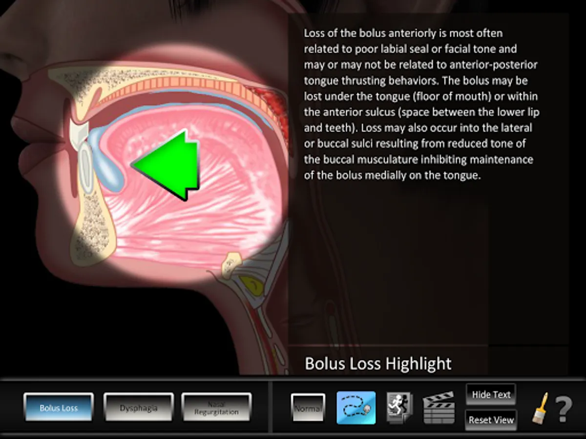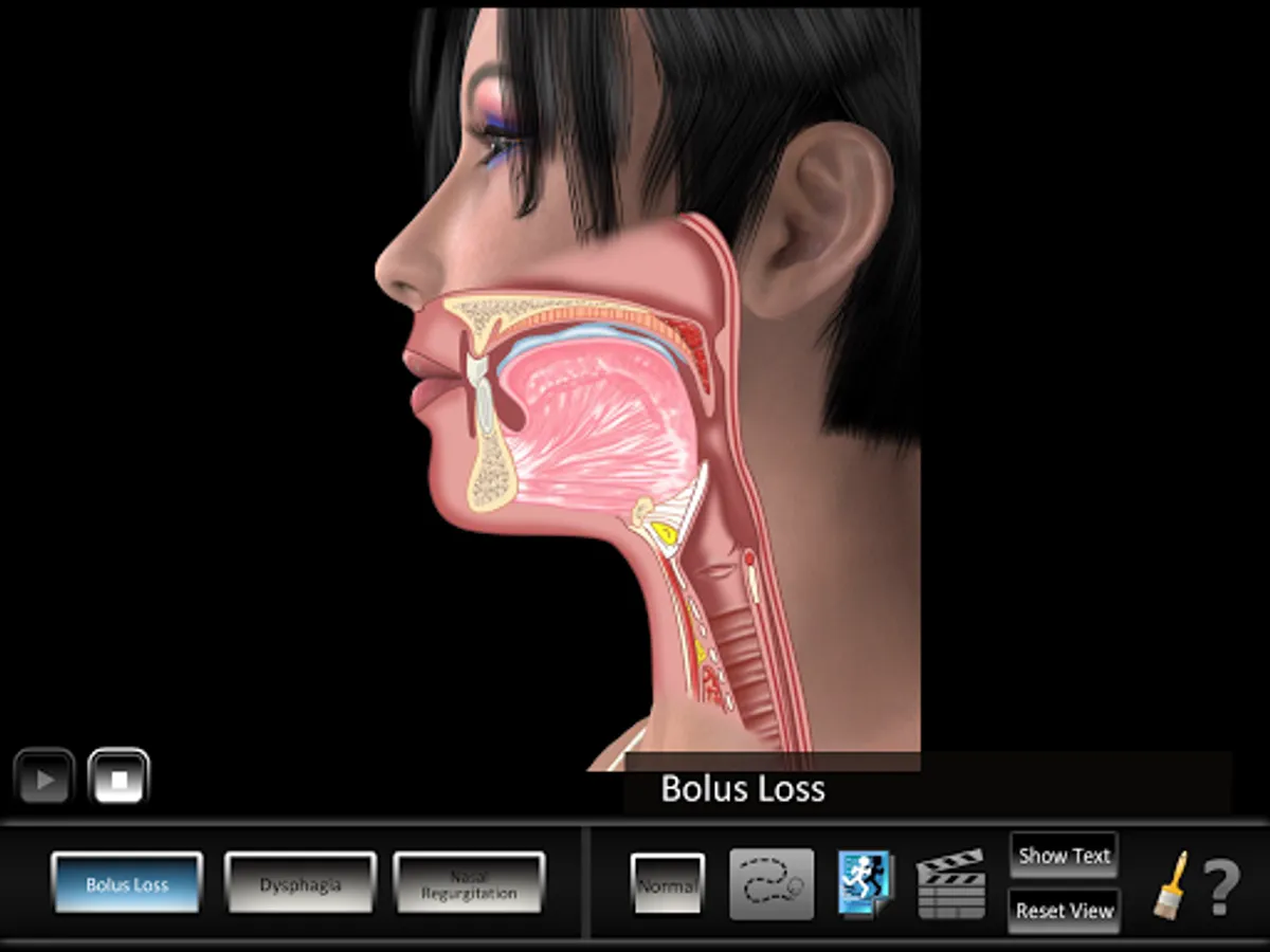 • Key disorder highlight, animation and video for bolus loss, dysphagia and nasal regurgitation views.