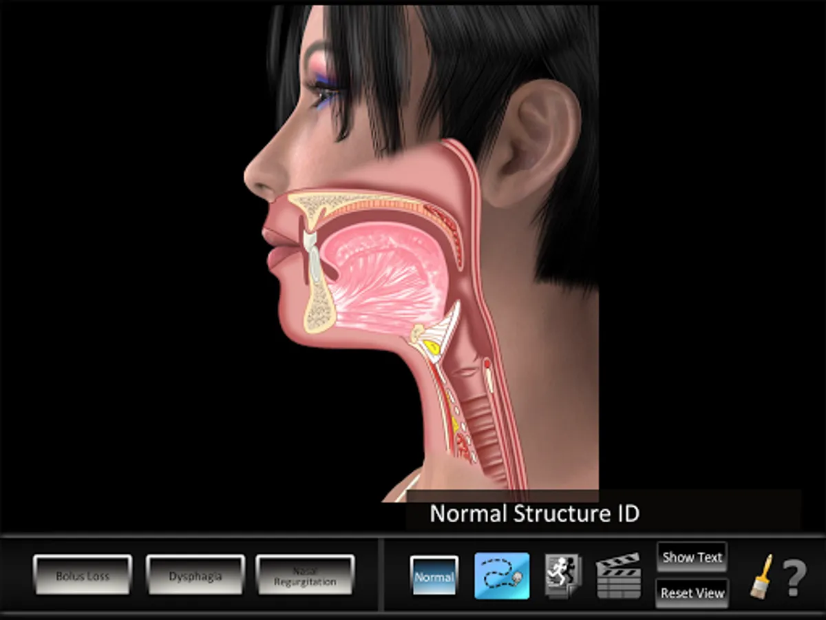 The Swallowing Oral app helps students and patients learn and professionals teach oral swallowing disorders. The app features normal, bolus loss, dysphagia and nasal regurgitation views. Animated anatomical illustrations, key disorder highlight and a video for each view help patients and students learn.