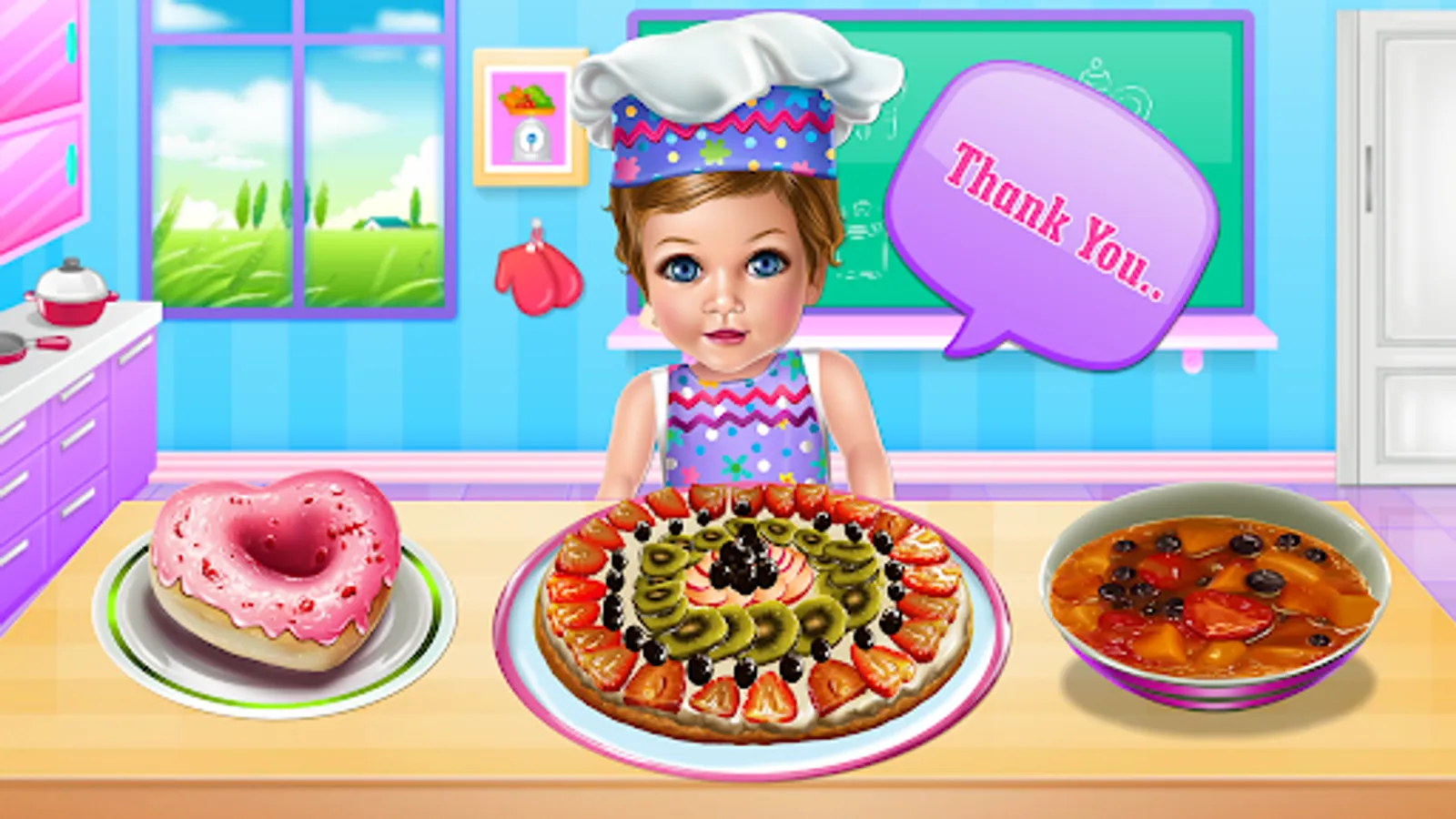 Cooking was never been easier, in fact, you have the chance to create delicious desserts together with her. This cooking game is the perfect combination for all the tastes because you not only cook the food, but you also get to assemble it. There are three different types of sweets you are preparing and each one requires other approaches and styles to make things done. A real chef is going to adapt to all these situations and of course if you follow the given steps you won't be able to do it wrong. You've got the book that contains the recipes and the way your dish should look like in the end. It doesn't matter with what you begin to cook, you just have to do all of them in the end. So, take a look at that fruity delicious glazed donut that will take your breath away only by thinking about it. Prepare the fruits, make the glaze, make sure the dough has all the needed ingredients and then fry the perfect heart shape made out of dough in the pan. Decorate it and this plate is done. Next one is the fruit pizza that actually would look like a pizza as a tasty juicy version. Follow the steps and achieve the wanted aspect and taste for this dish too. Move to the fruit soap that could be the thing you've never tasted. Make a delicious one and now that you know all the steps you can even make it for yourself because who doesn't love a fruity dessert. Have fun and try to finish this school academy for cooking.